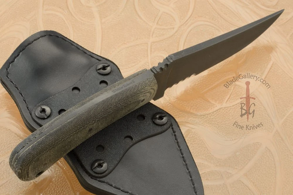 Belt Knife With Black Micarta, Serrations