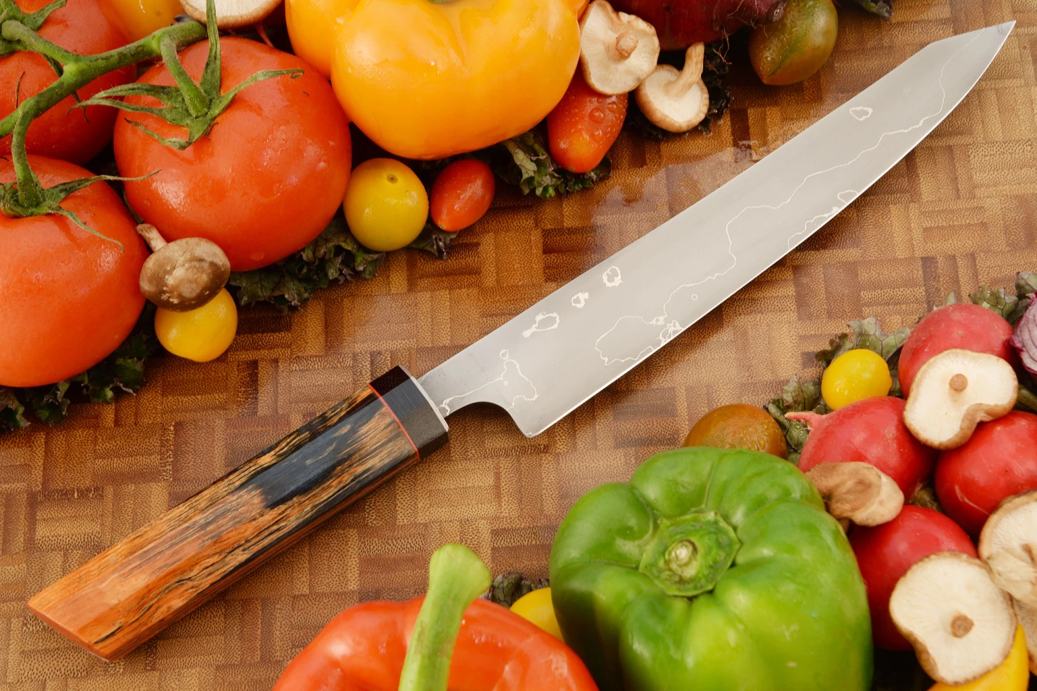 Damascus Chef’s Slicer (Sujihiki) With Masur Birch