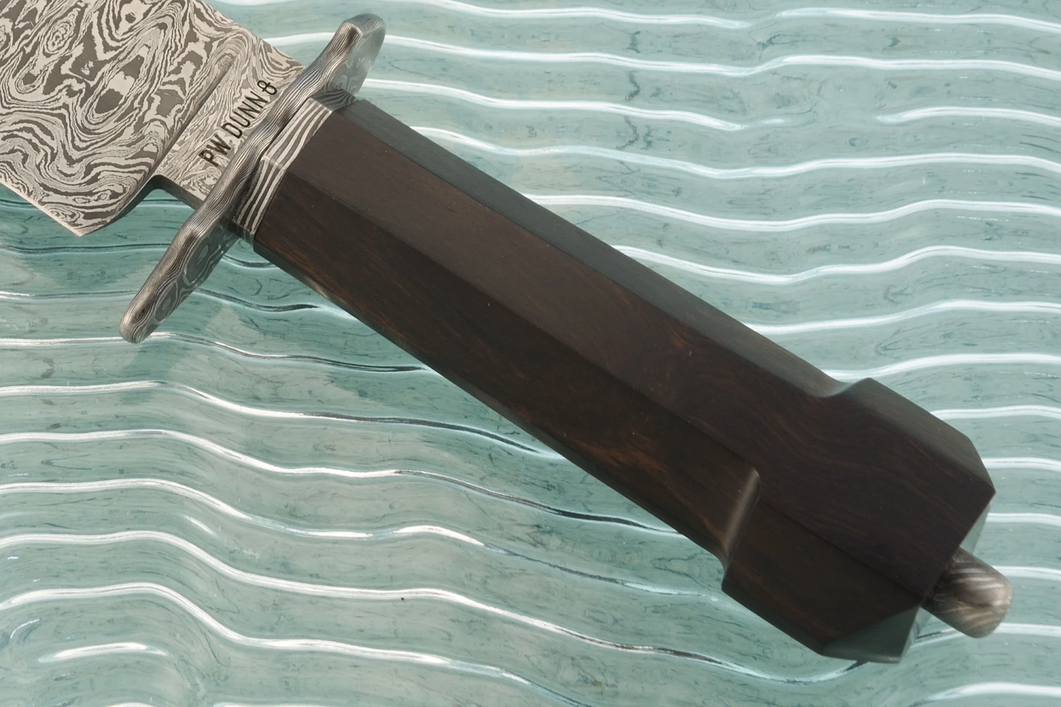 Damascus Dog Bone Bowie With African Blackwood