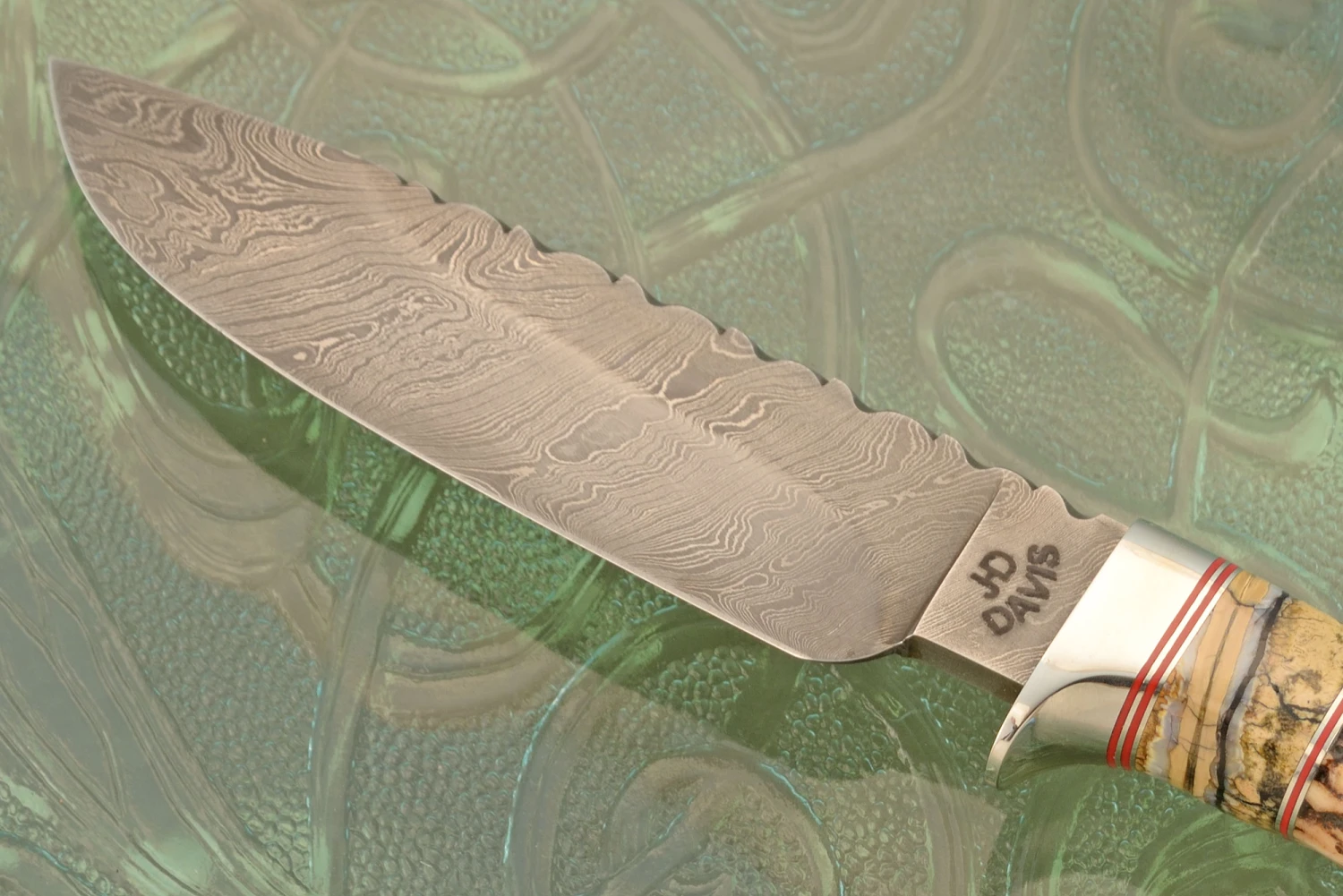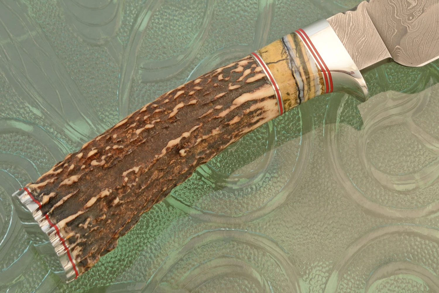 Damascus Drop Point Hunter With Stag And Mammoth Molar