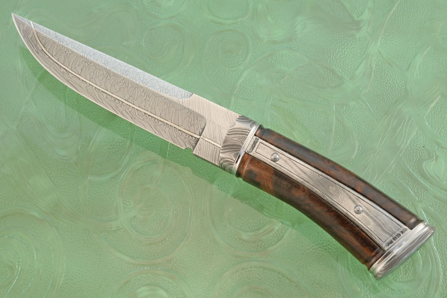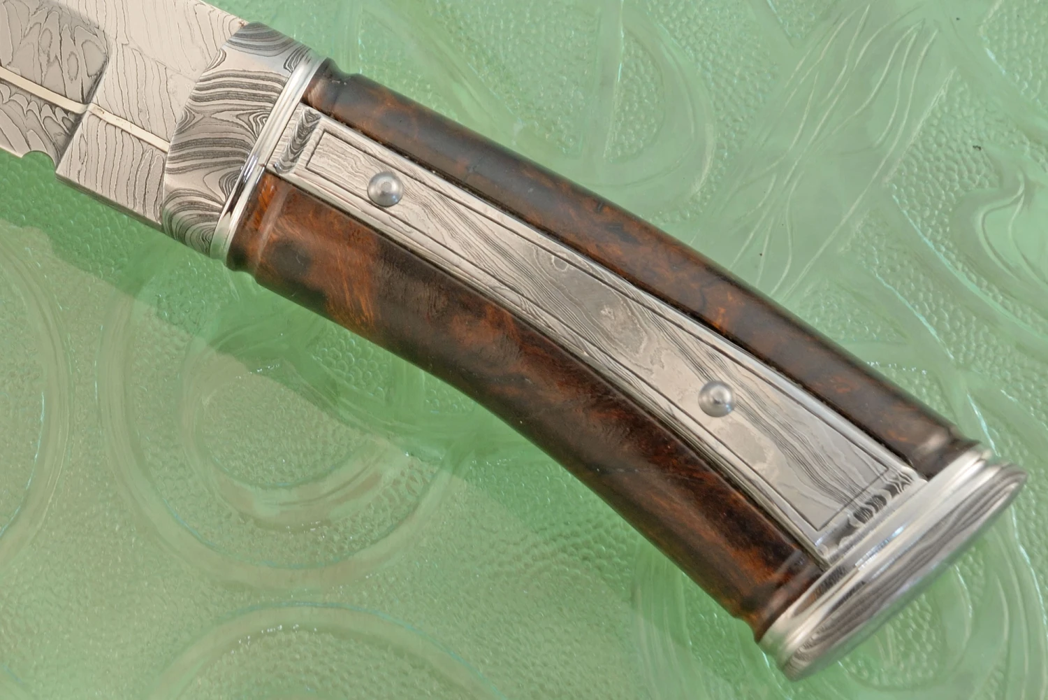 Damascus “D” Guard Bowie With Maple And Antique Wrought Iron