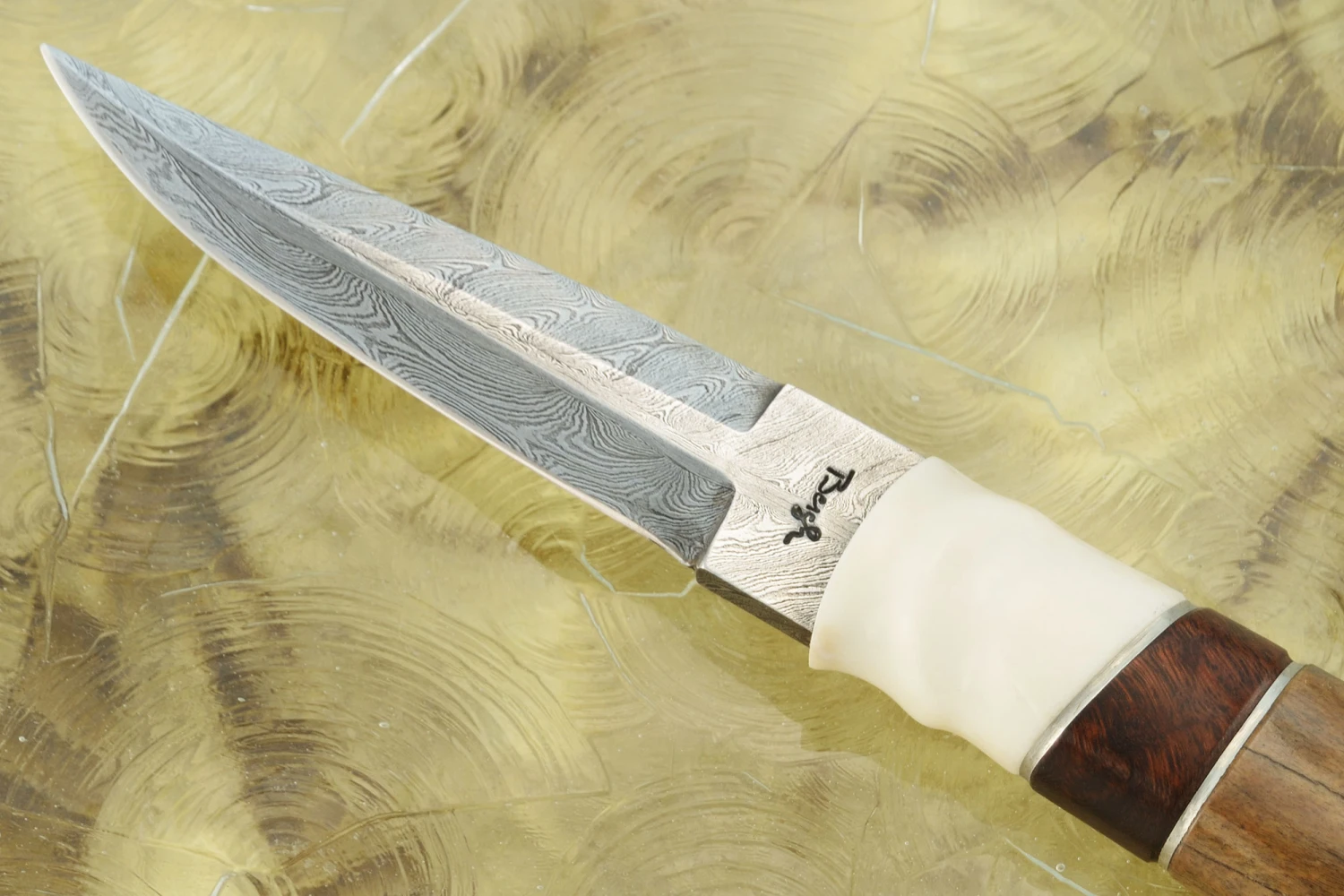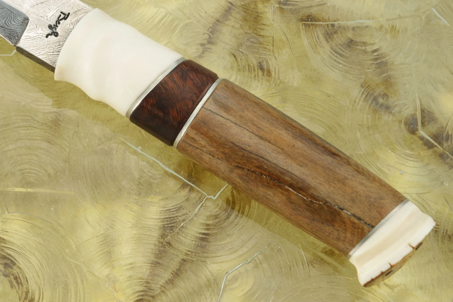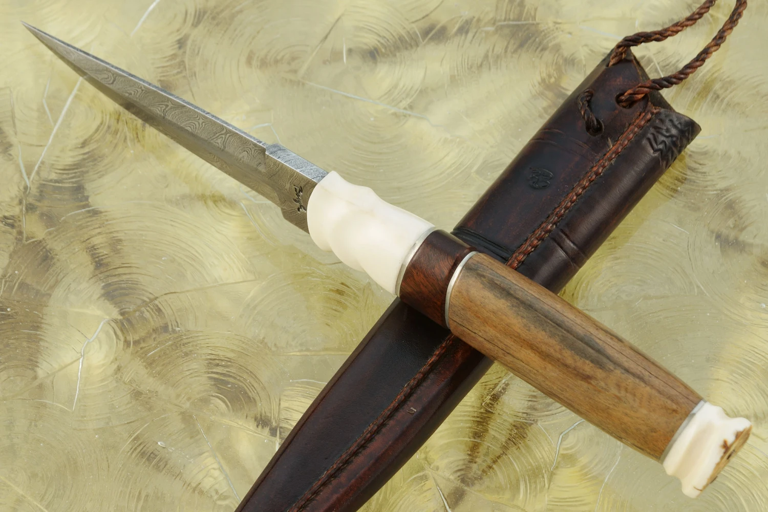 Damascus Puukko With Woolly Rhino Bone, Mammoth Ivory, Ironwood, And Reindeer Antler