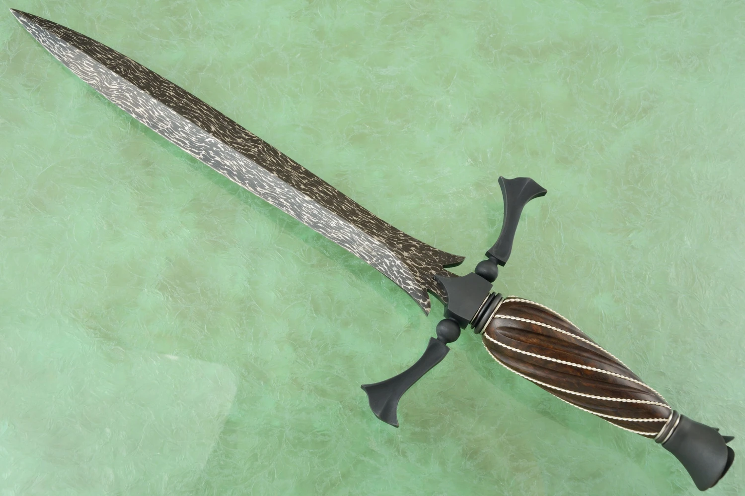 Damascus Tyrant Ant Dagger With Fluted Rooibos