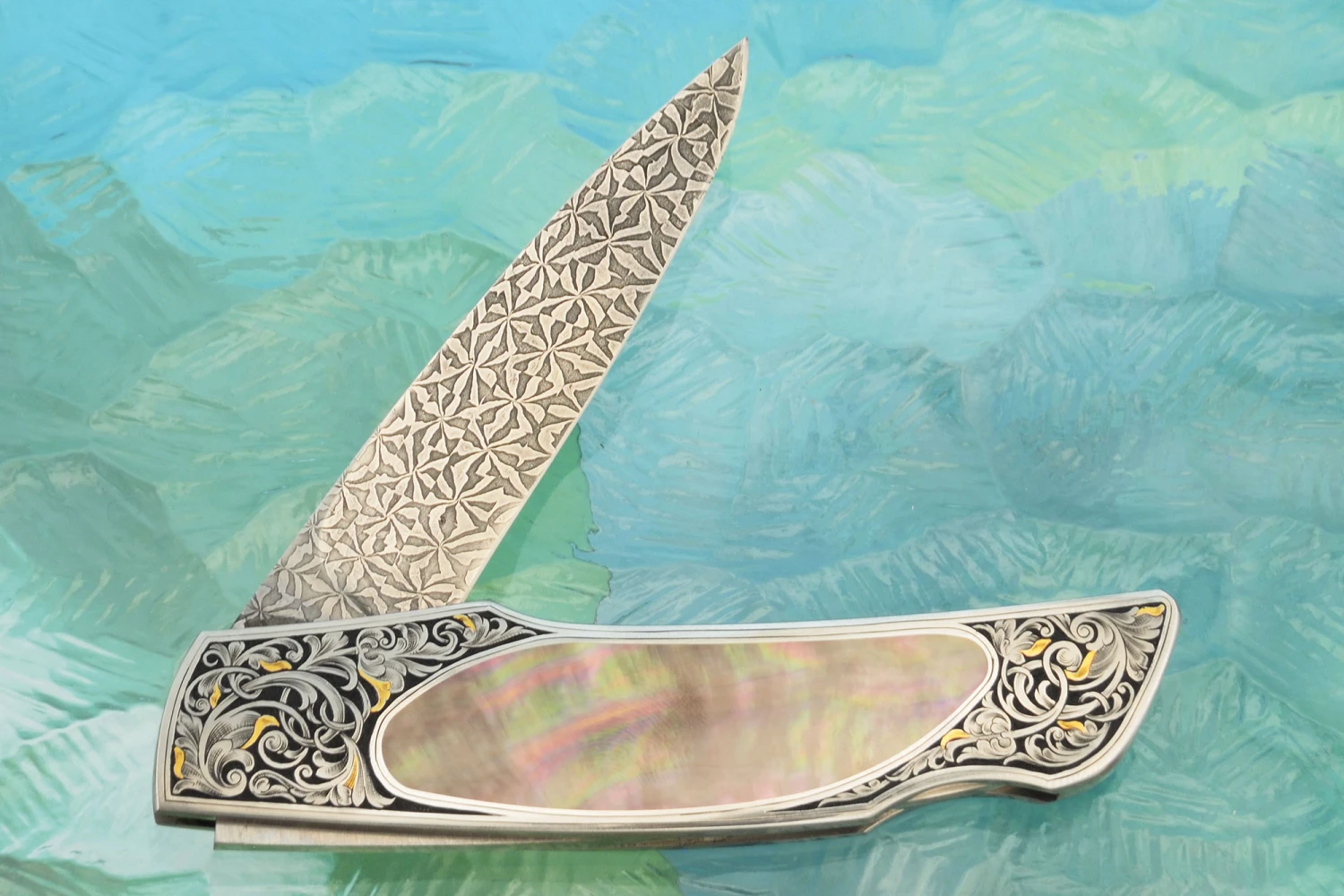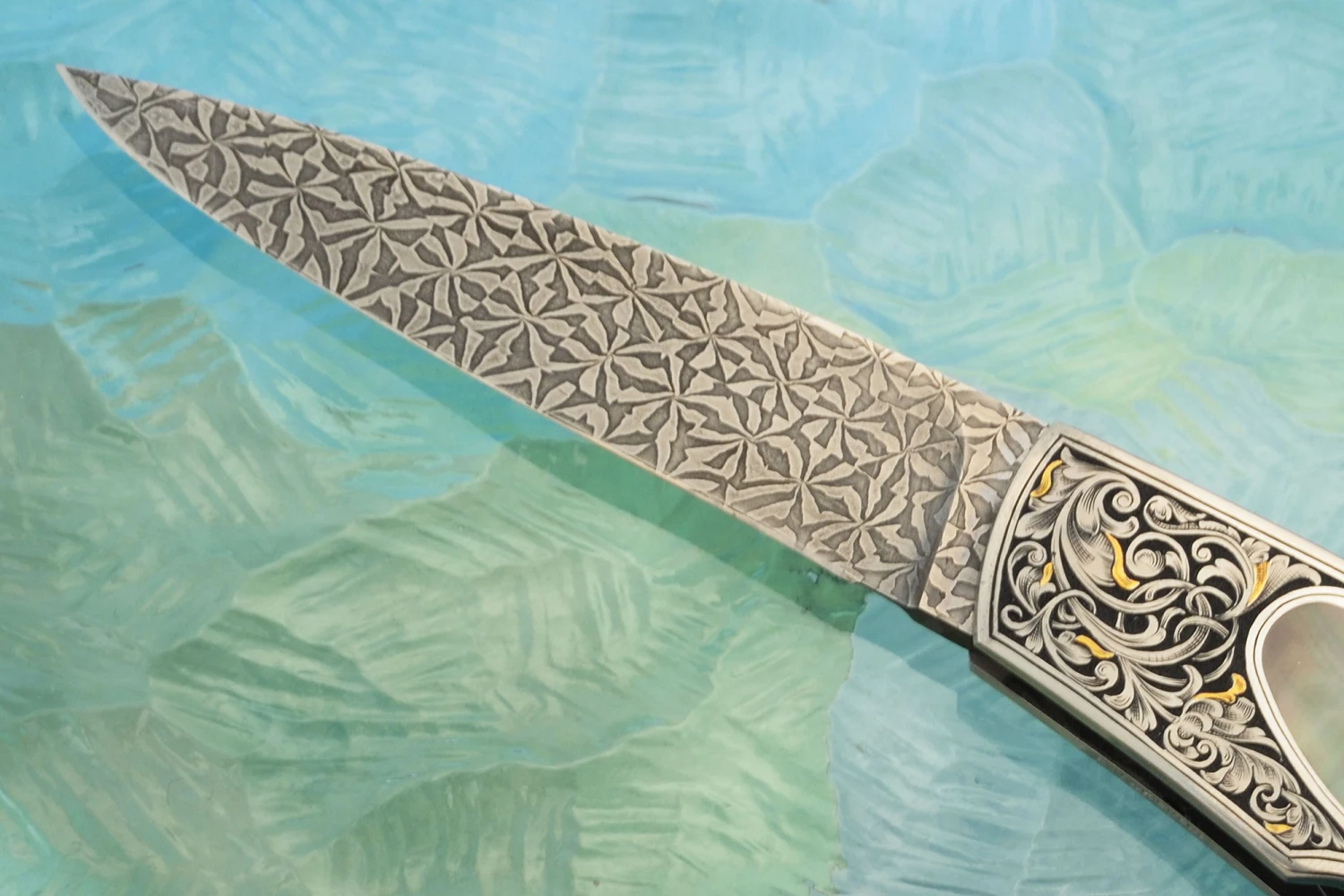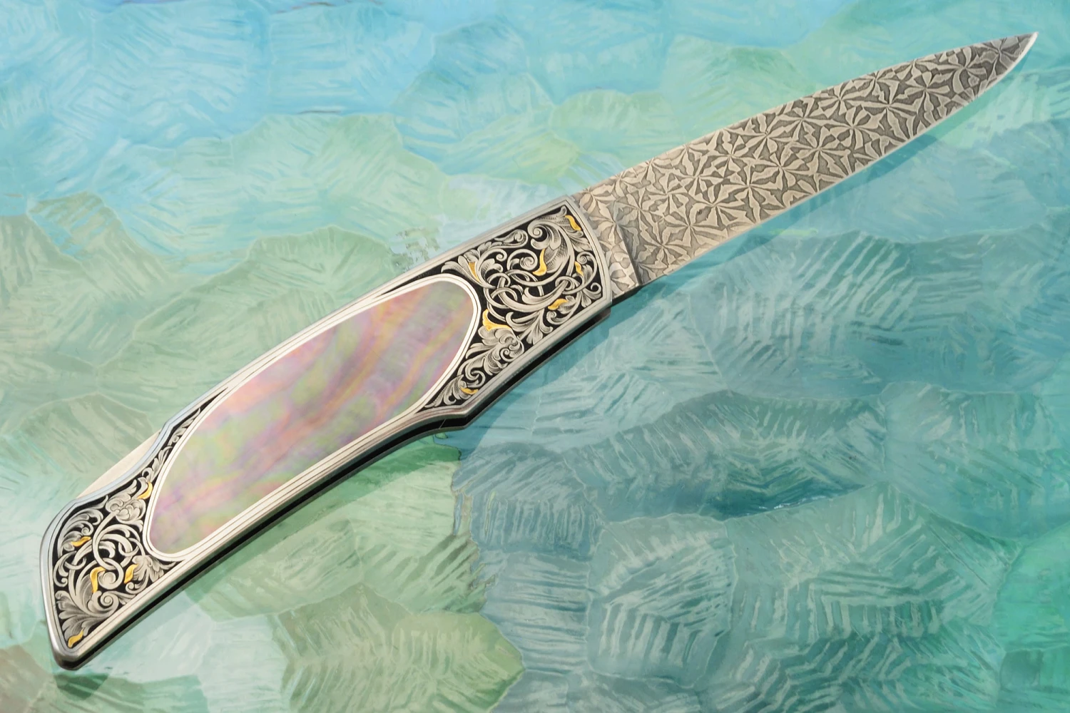Engraved Backlock Interframe With Blacklip Mother Of Pearl, Damascus And Gold Inlay
