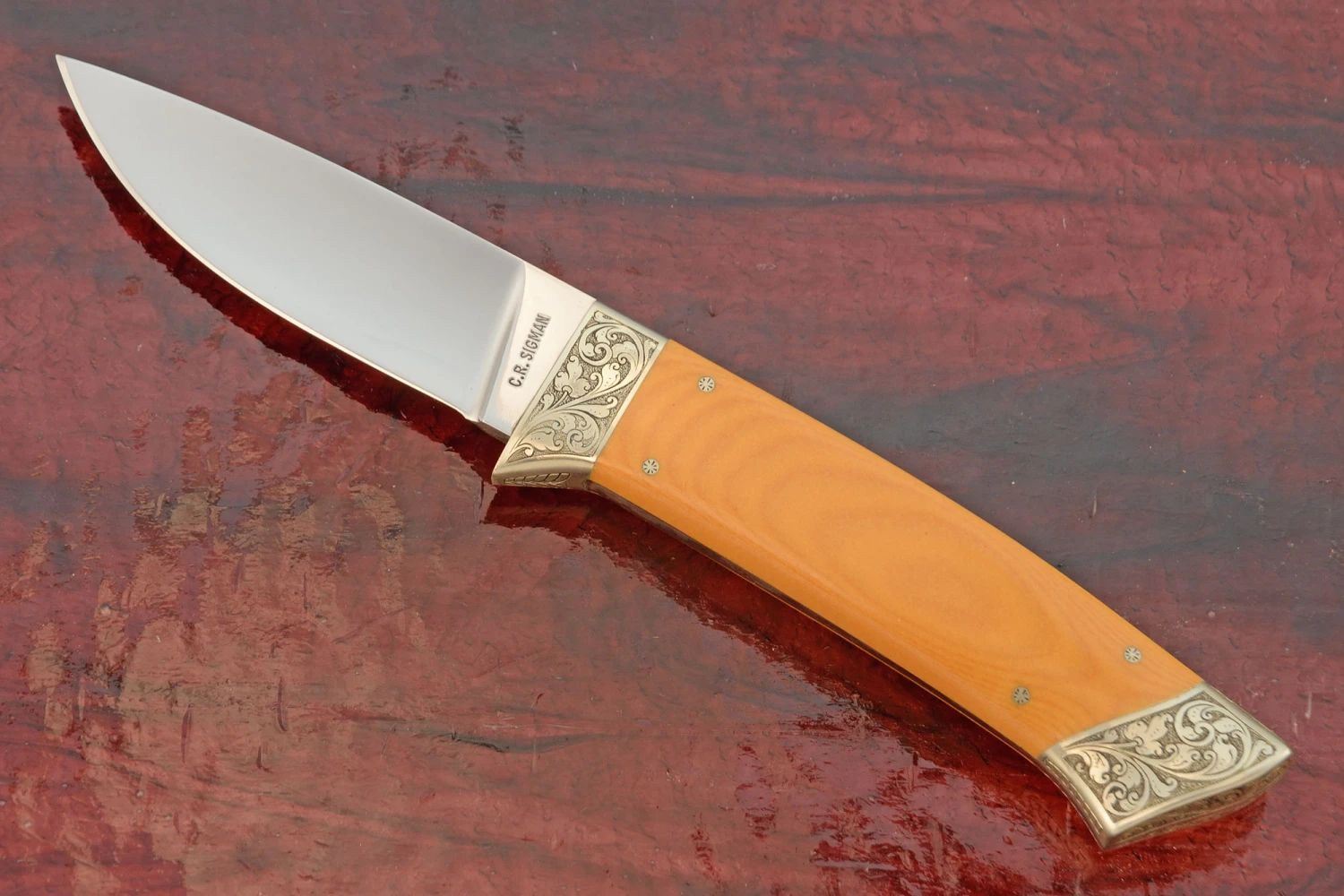 Engraved Drop Point Hunter With Antique Micarta