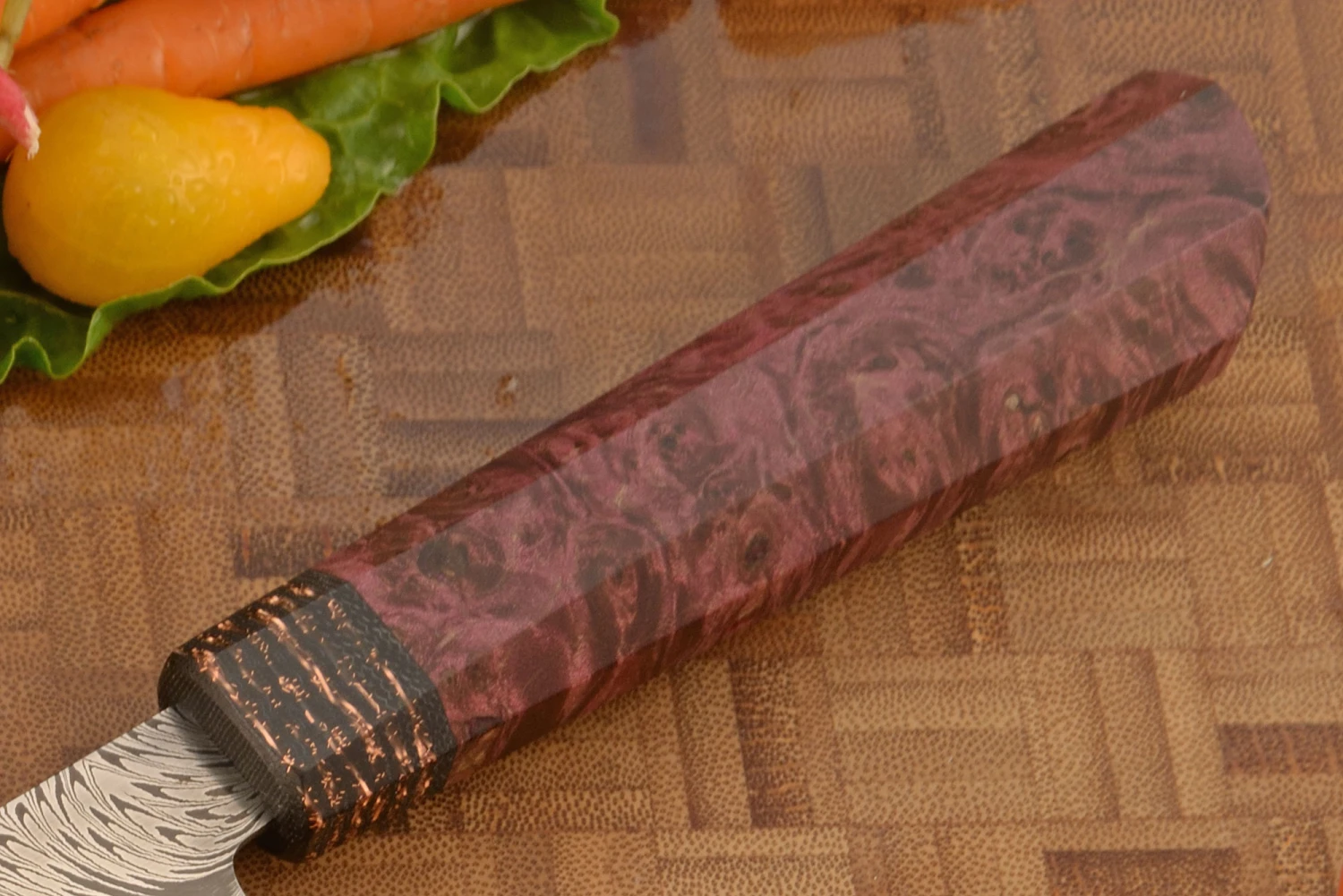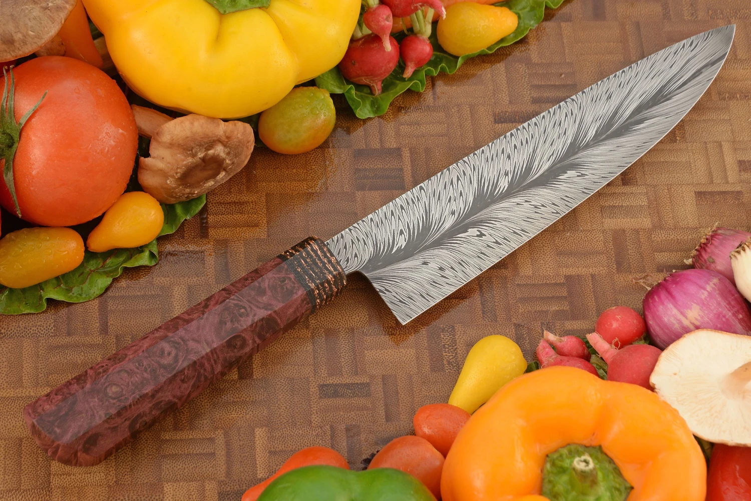 Be the first to review “Feather Damascus Chef’s Knife (7-1/2 In.) With Maple Burl” Cancel reply