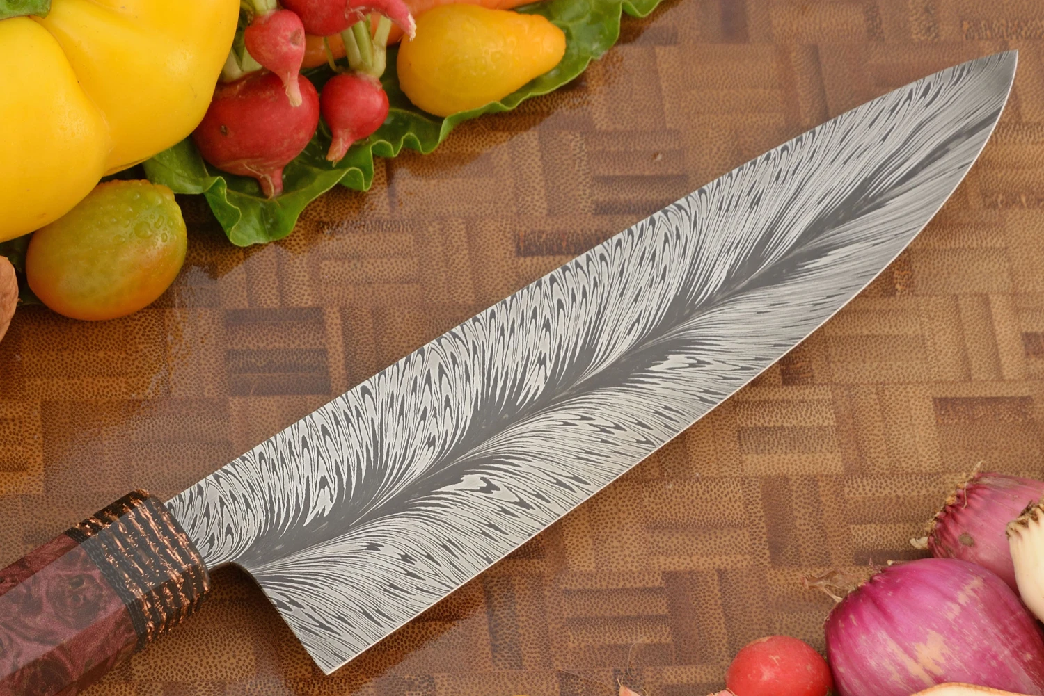 Feather Damascus Chef’s Knife (7-1/2 In.) With Maple Burl