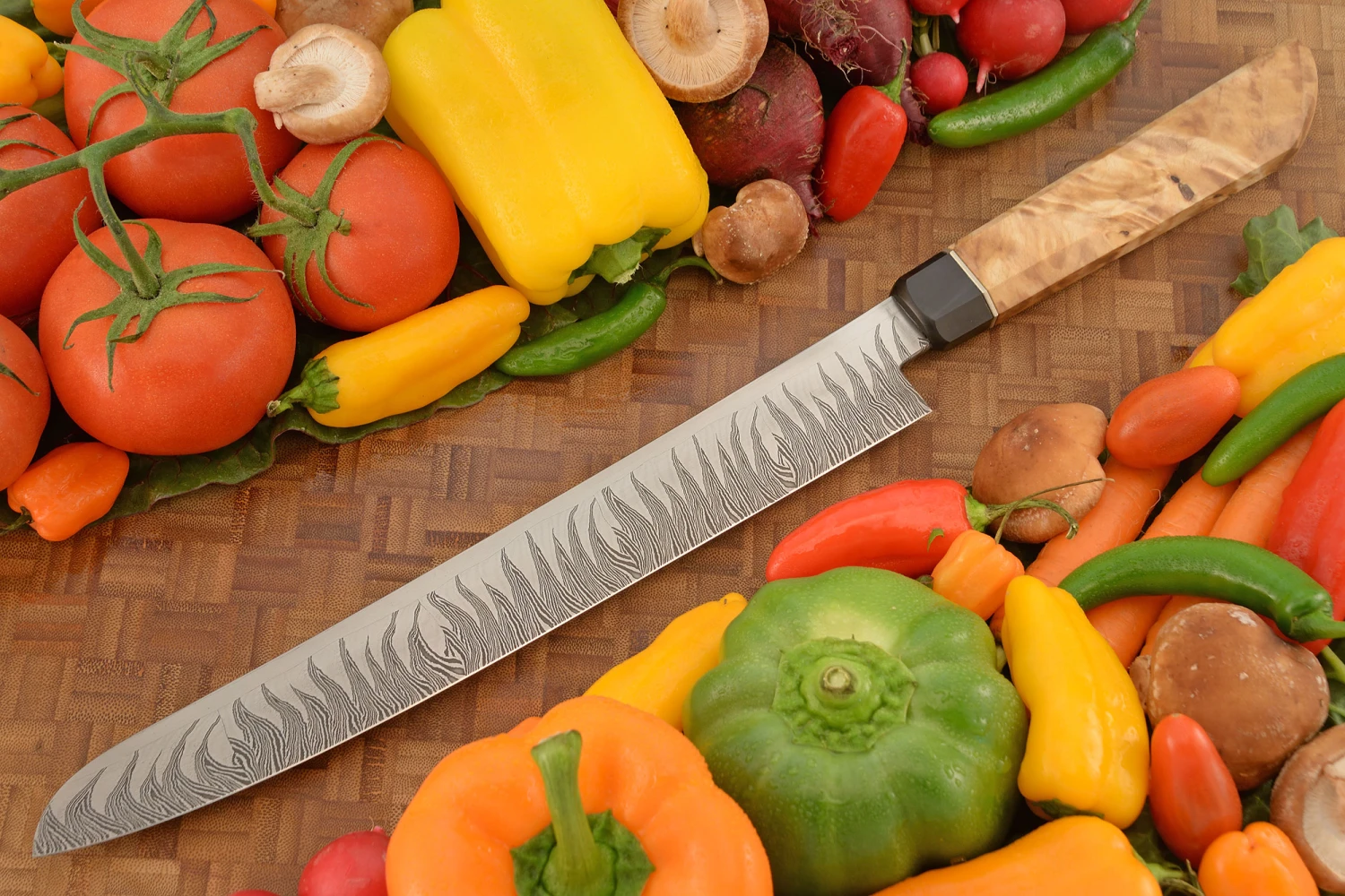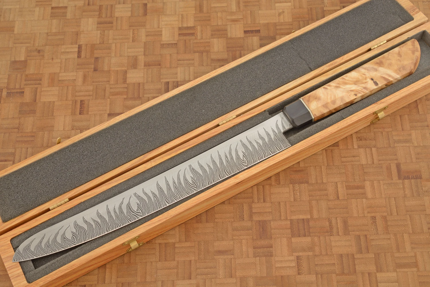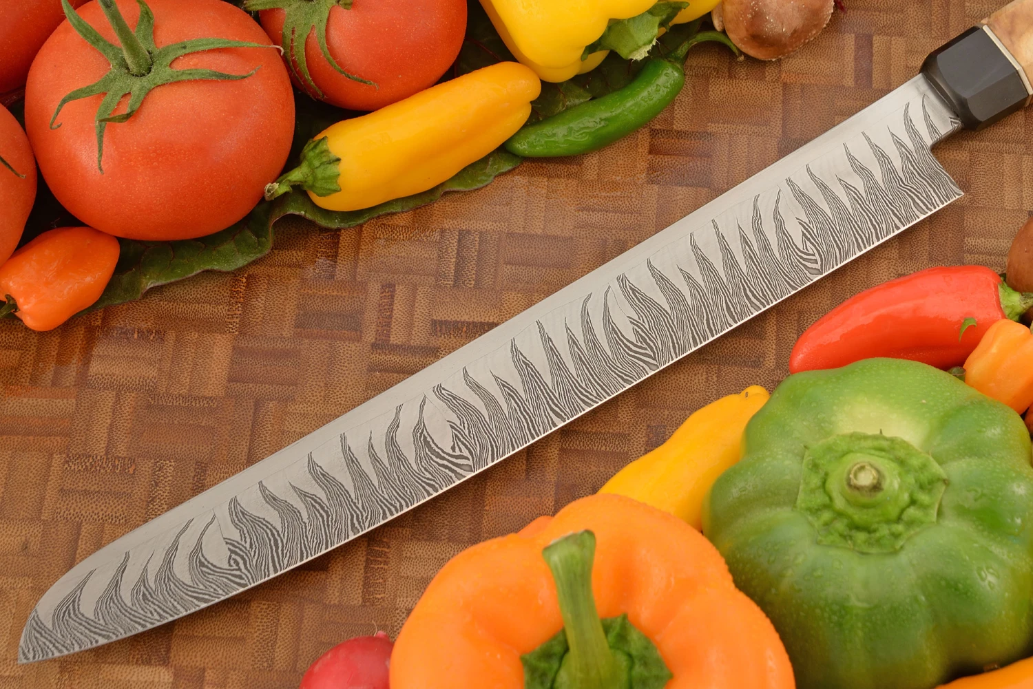 Flame Tooth Damascus Slicer With Himalayan Birch (11-1/2″)