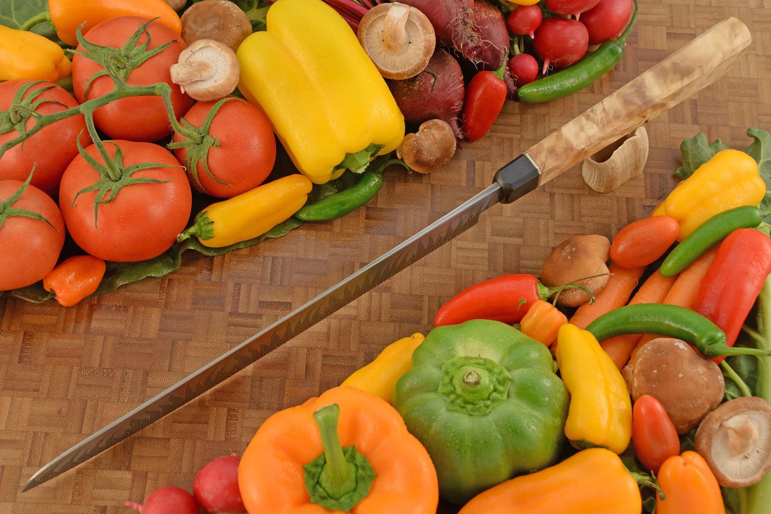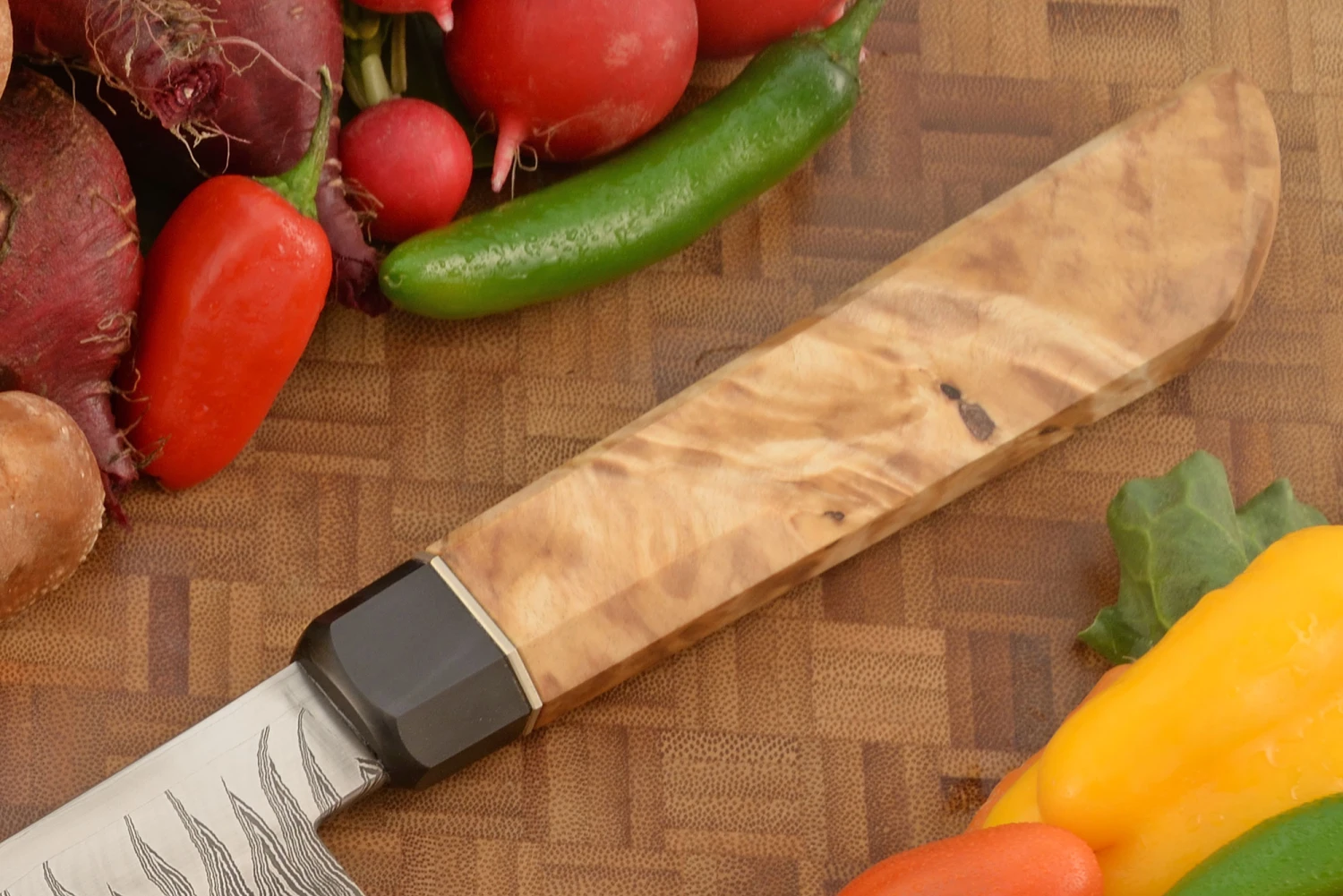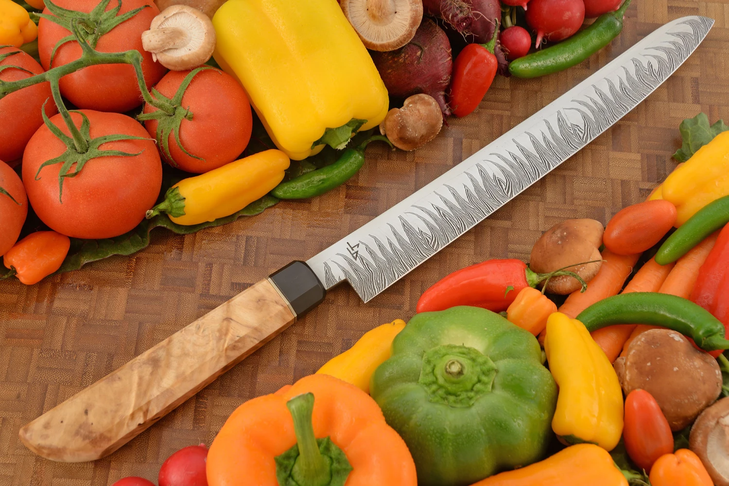 Flame Tooth Damascus Slicer With Himalayan Birch (11-1/2″)