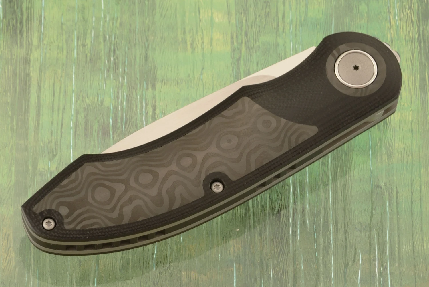 Be the first to review “G8 Front Flipper With Black G-10 And Black Dunes FatCarbon – M390” Cancel reply