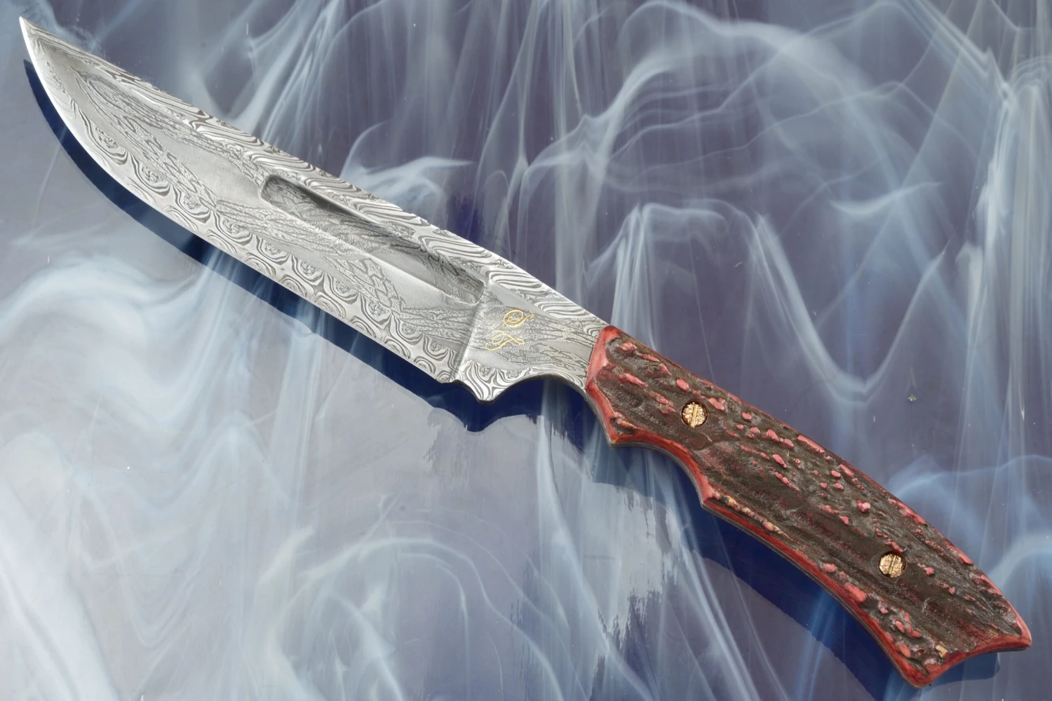 Damascus Backlock Interframe With Bulino Engraving And Blacklip Mother Of Pearl (Prototype)