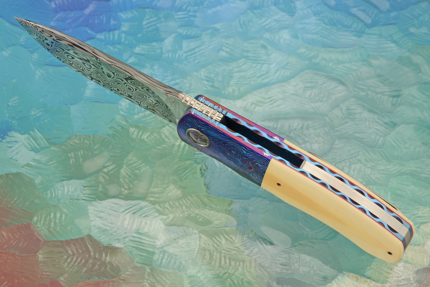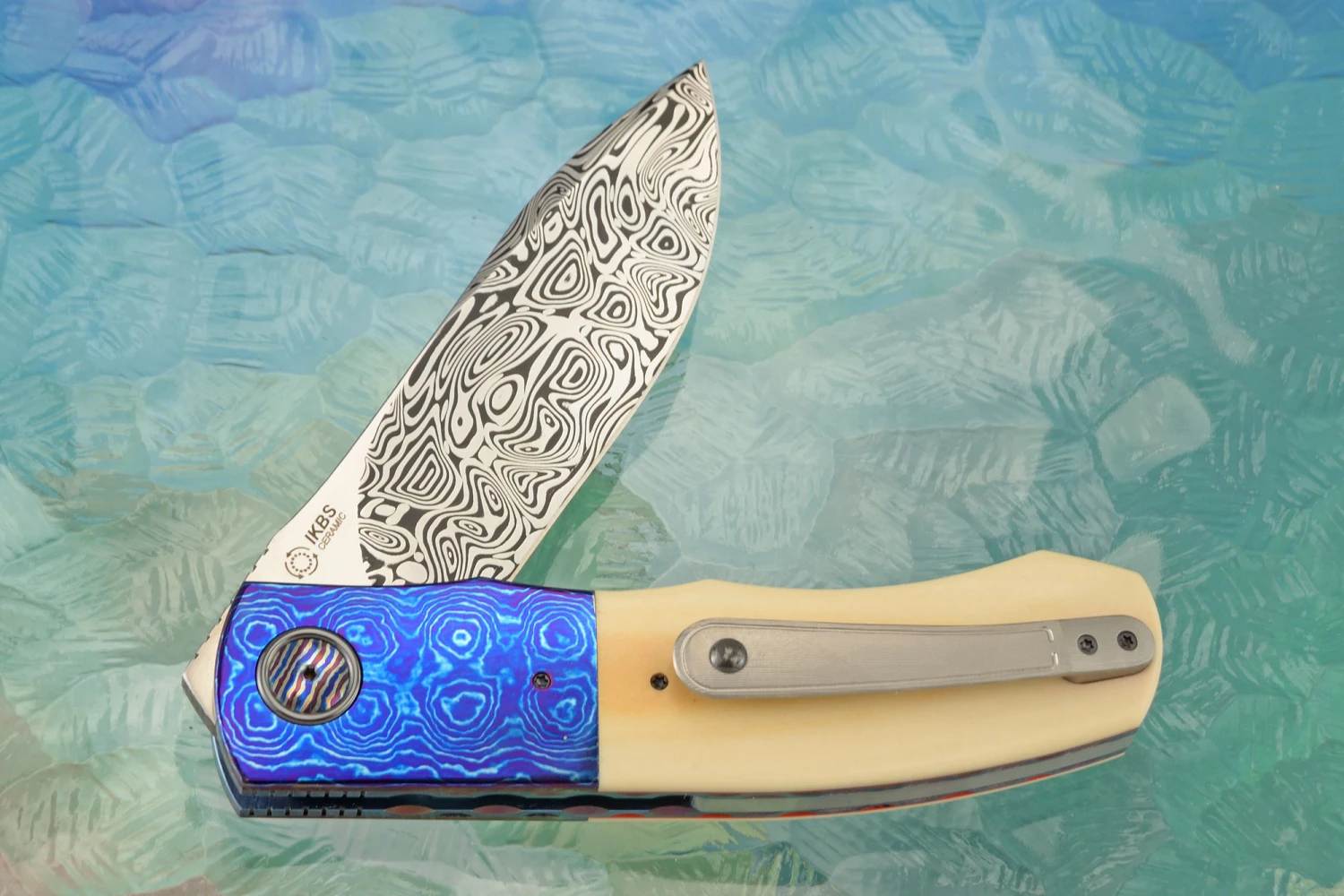 L46 Flipper With Damasteel, Westinghouse Micarta, And Timascus (Ceramic IKBS)