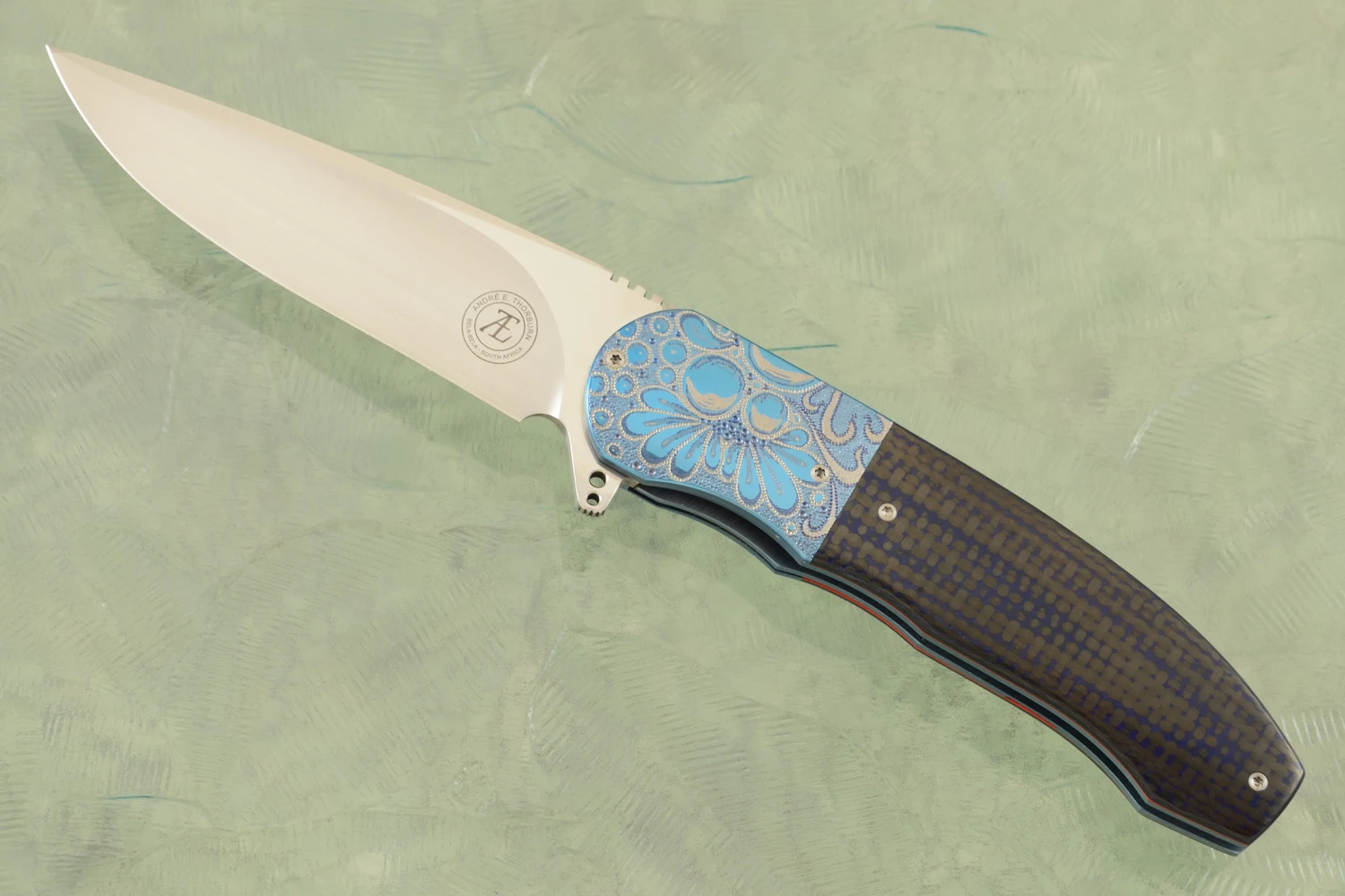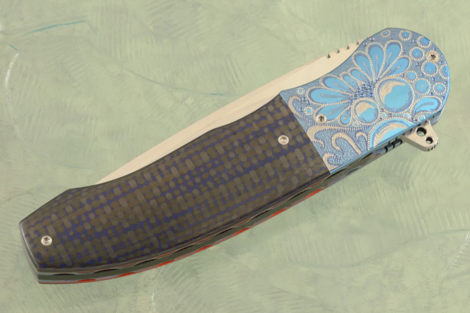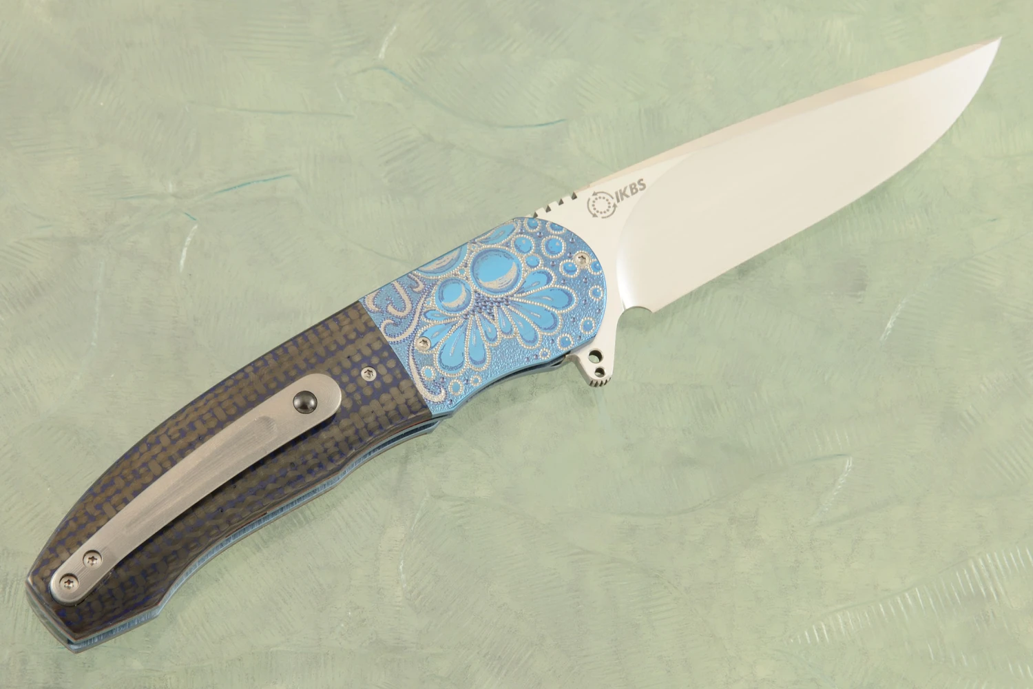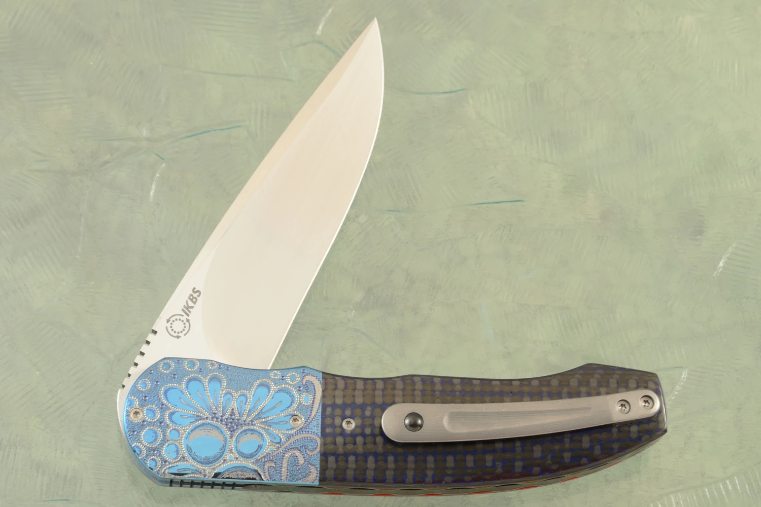 HI-06 Engraved Front Flipper With Damascus And Copper Dark Matter FatCarbon (Ceramic IKBS)