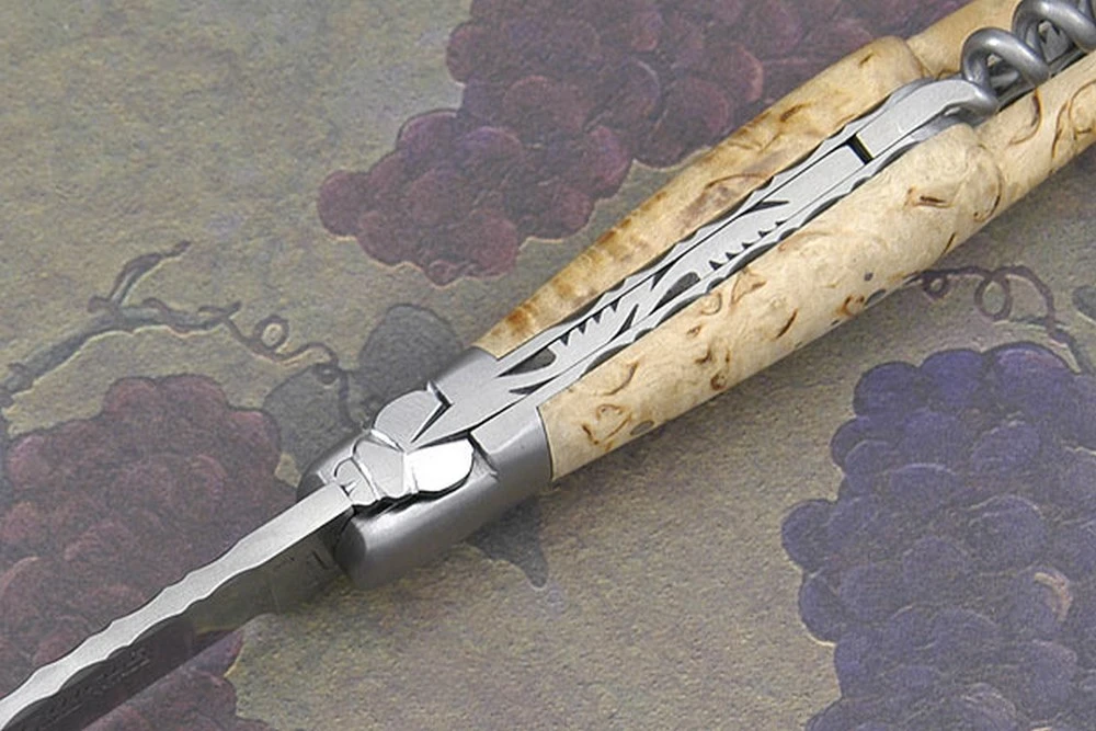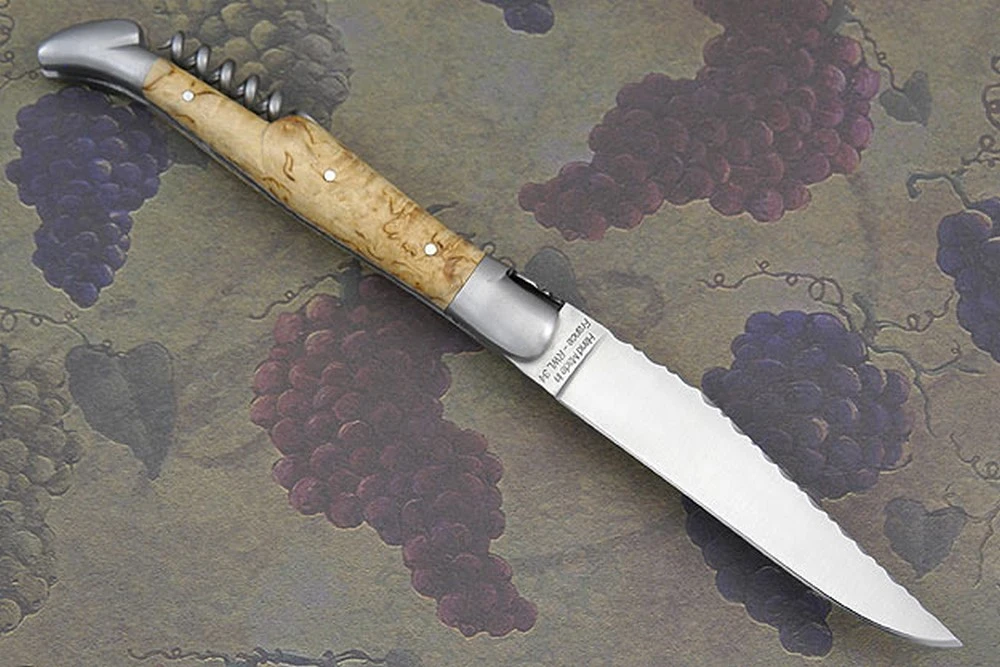 Laguiole Guilloché Picnic Knife With Corkscrew, Curly Birch