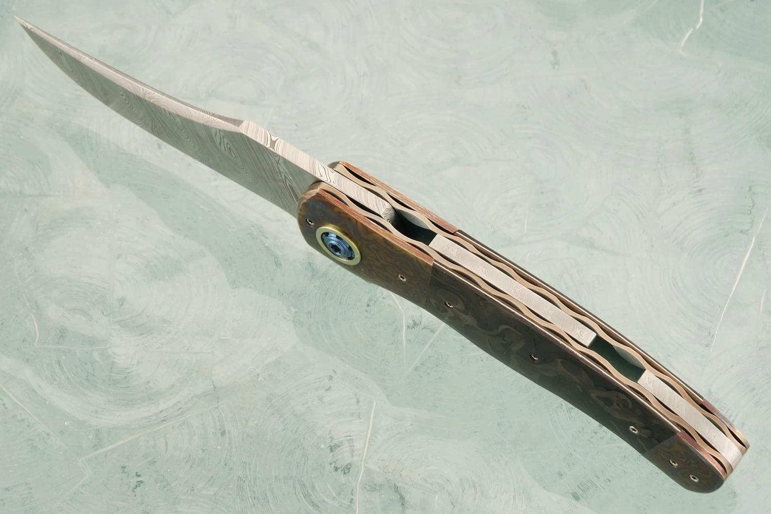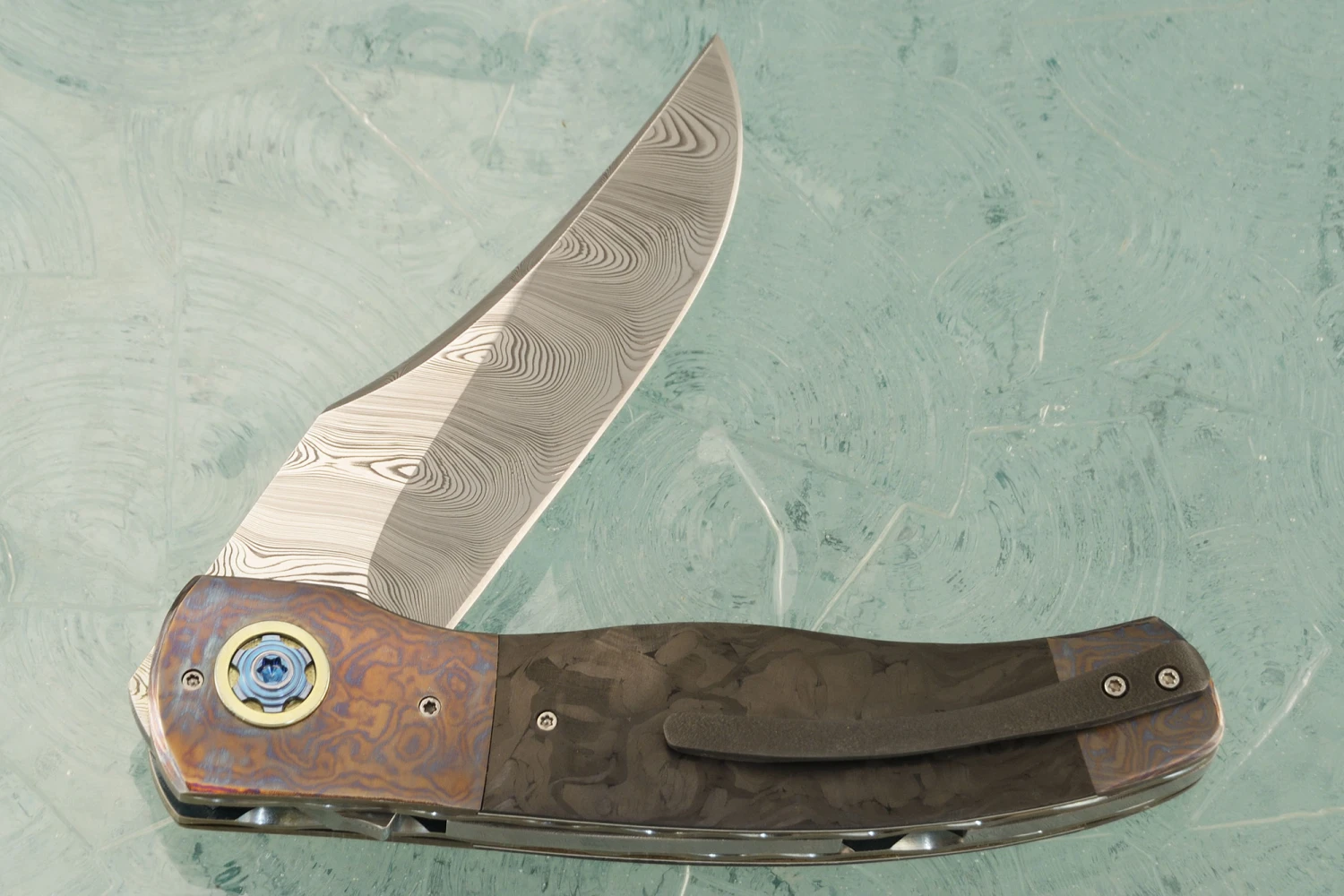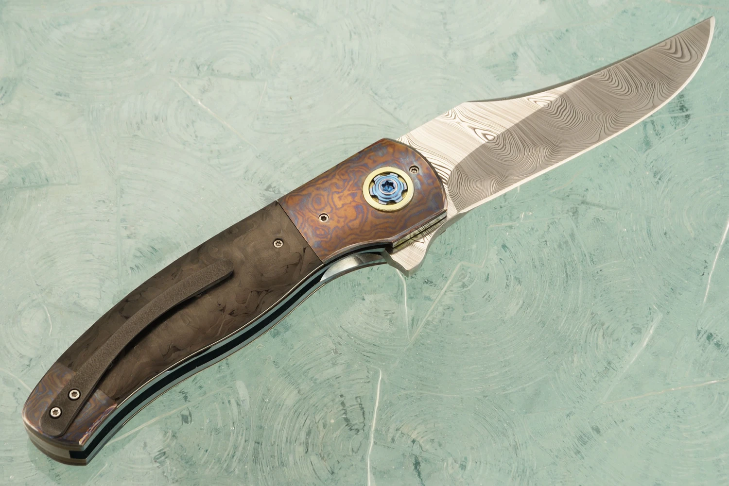 LL-XX Flipper With Damasteel, Marble Carbon Fiber, And Timascus (Ceramic IKBS)
