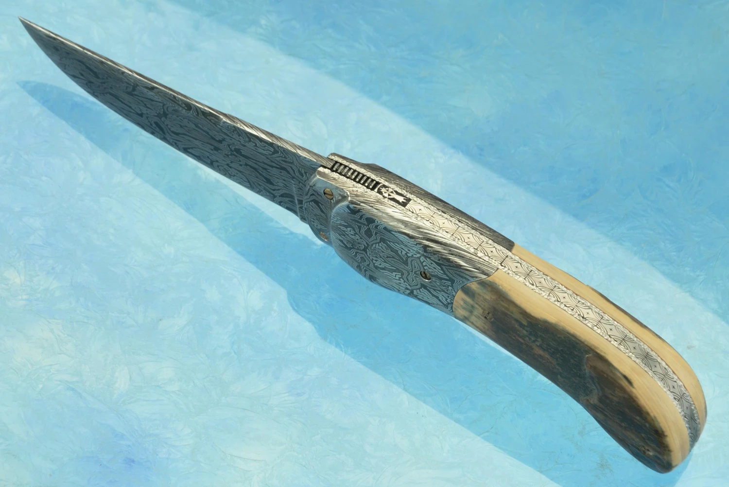 Be the first to review “Mirage Front Flipper With Damascus And Mammoth Bark” Cancel reply