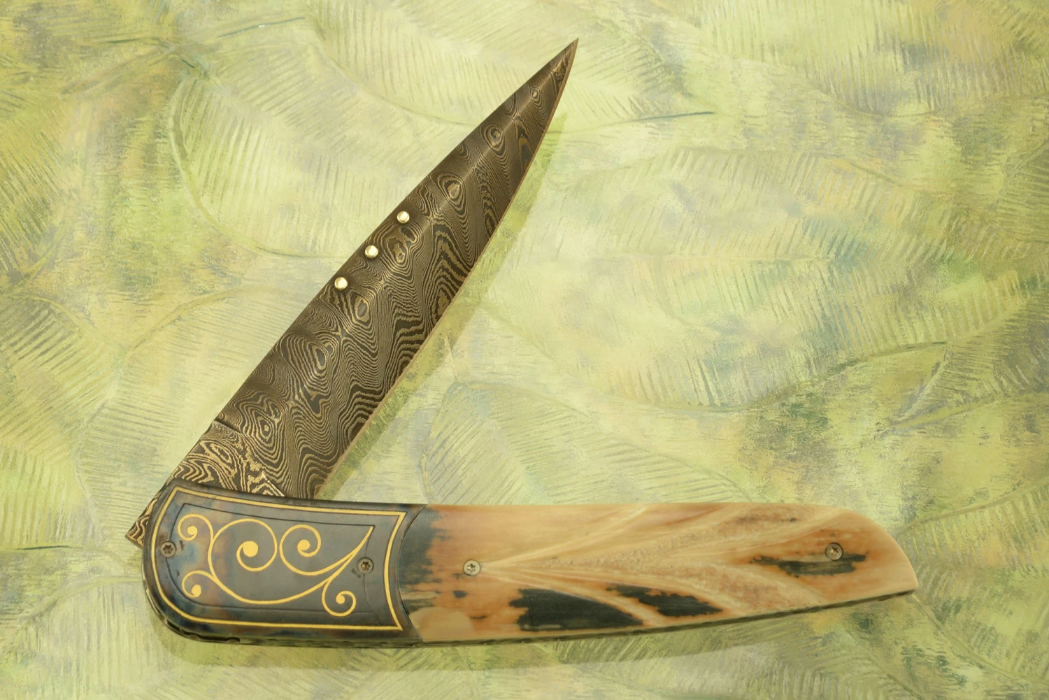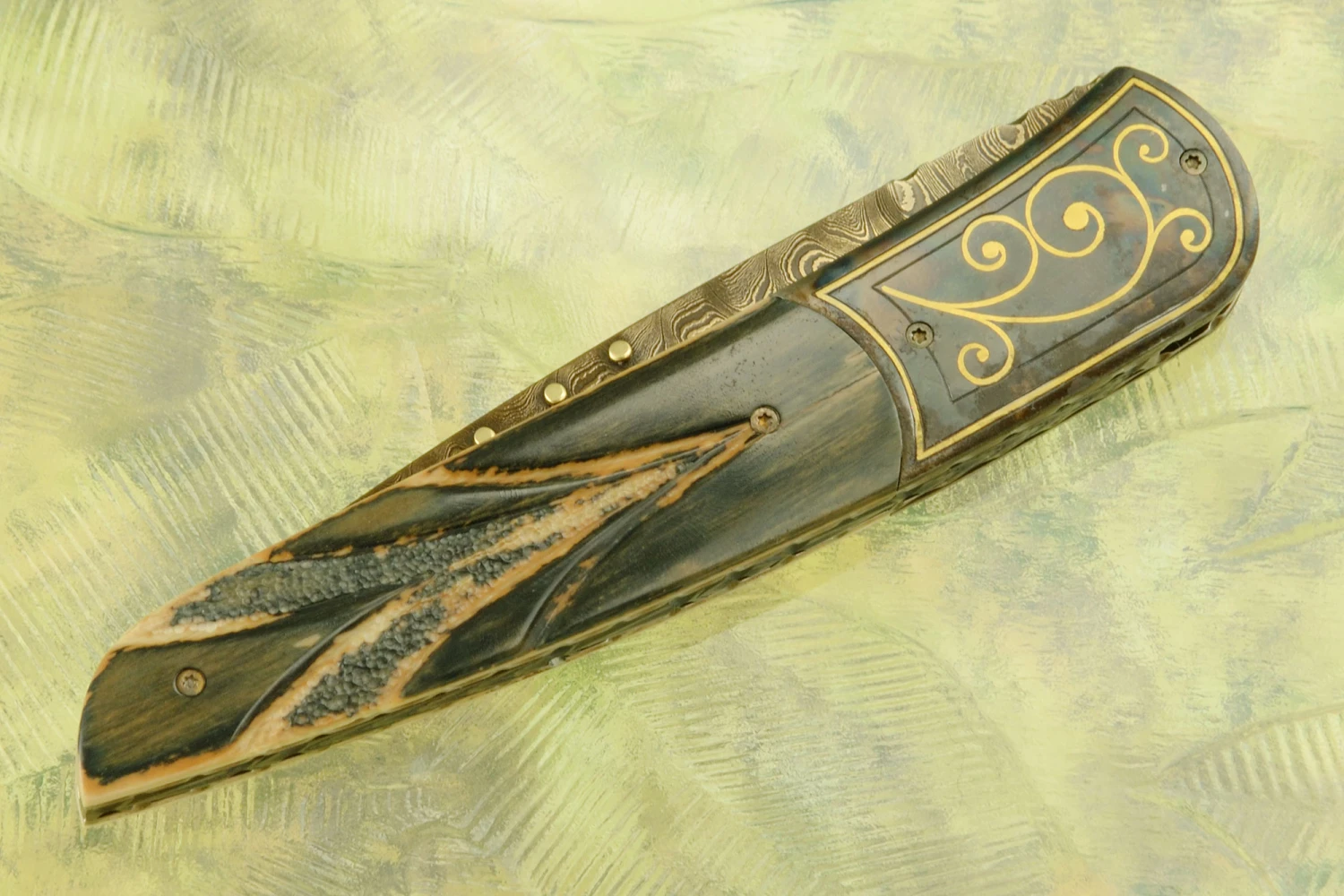 Model 8L Damascus Folder With Carved Mammoth Ivory