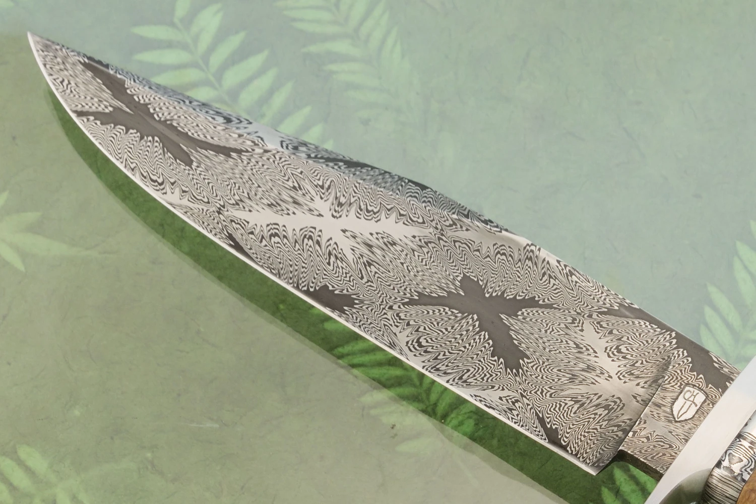 Mosaic Damascus Bowie With Golden Amboyna Burl