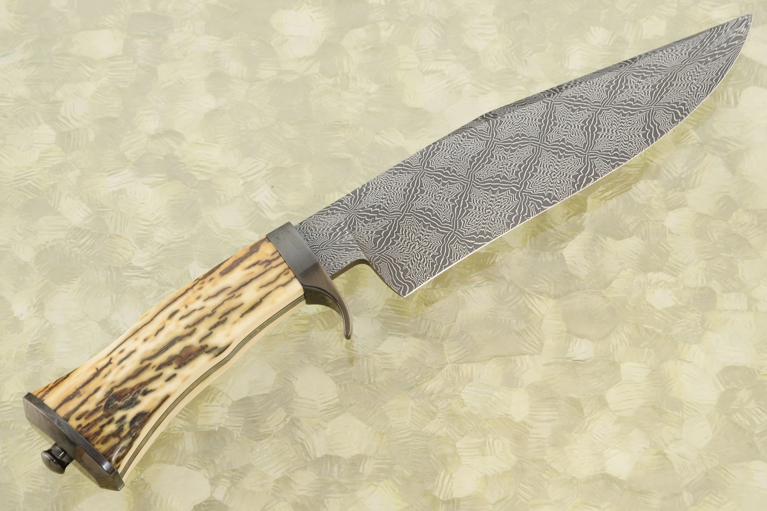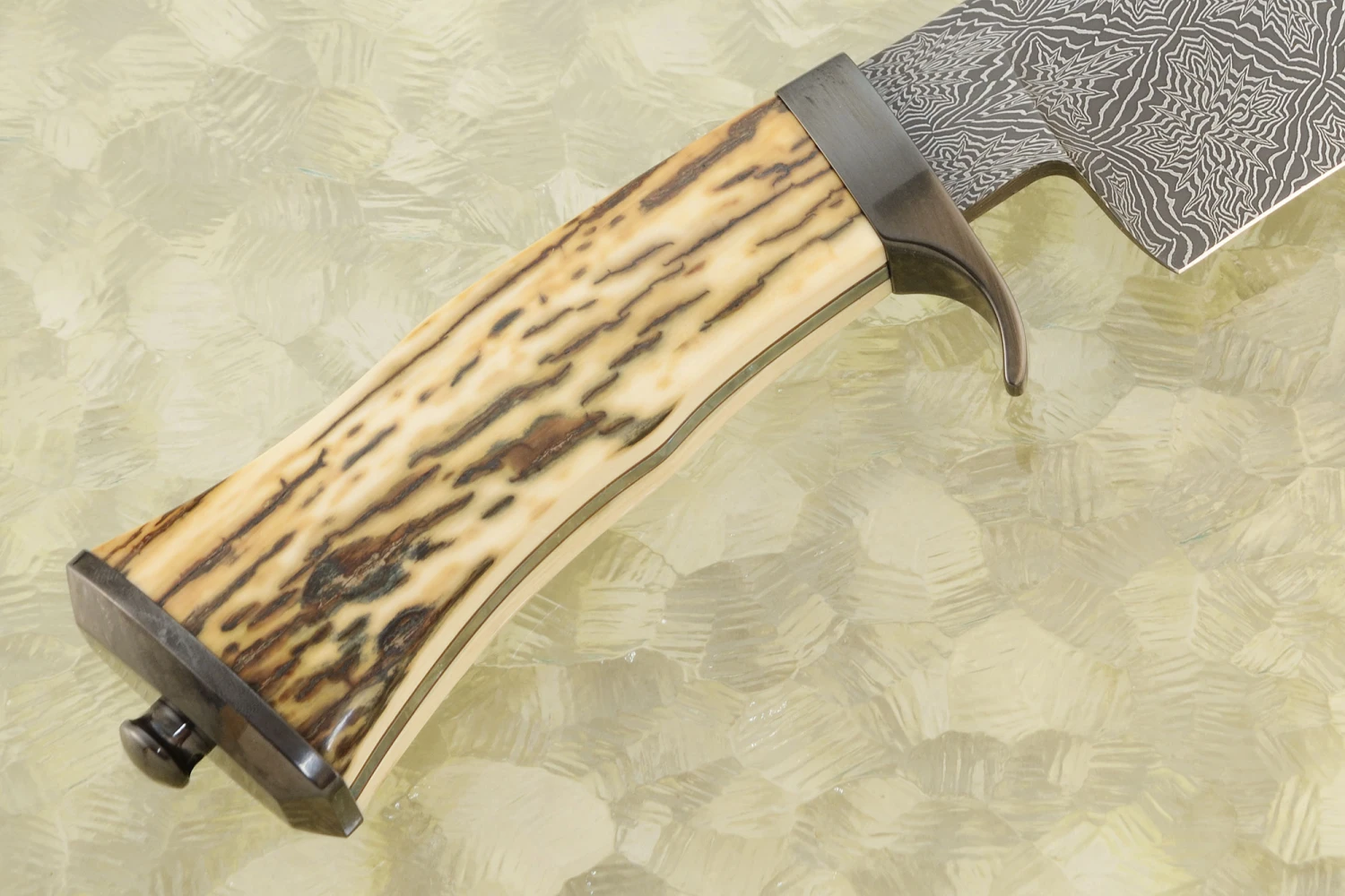 Mosaic Damascus Bowie With Mammoth Ivory And Zirconium