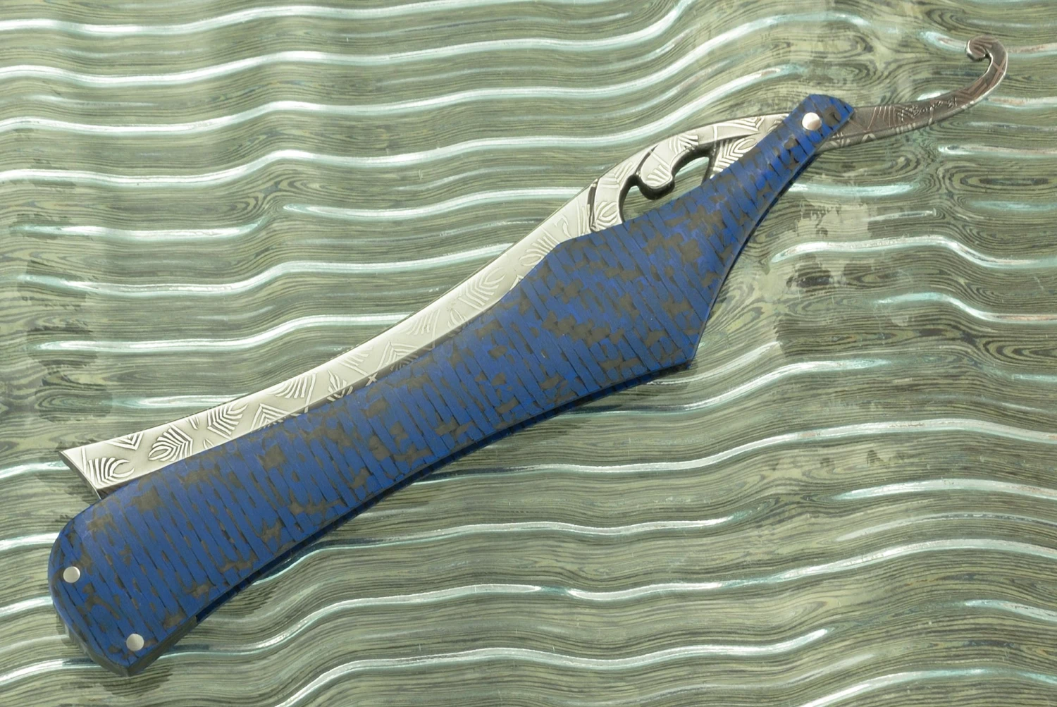 Mosaic Damascus Straight Razor With Blue Carbon Fiber