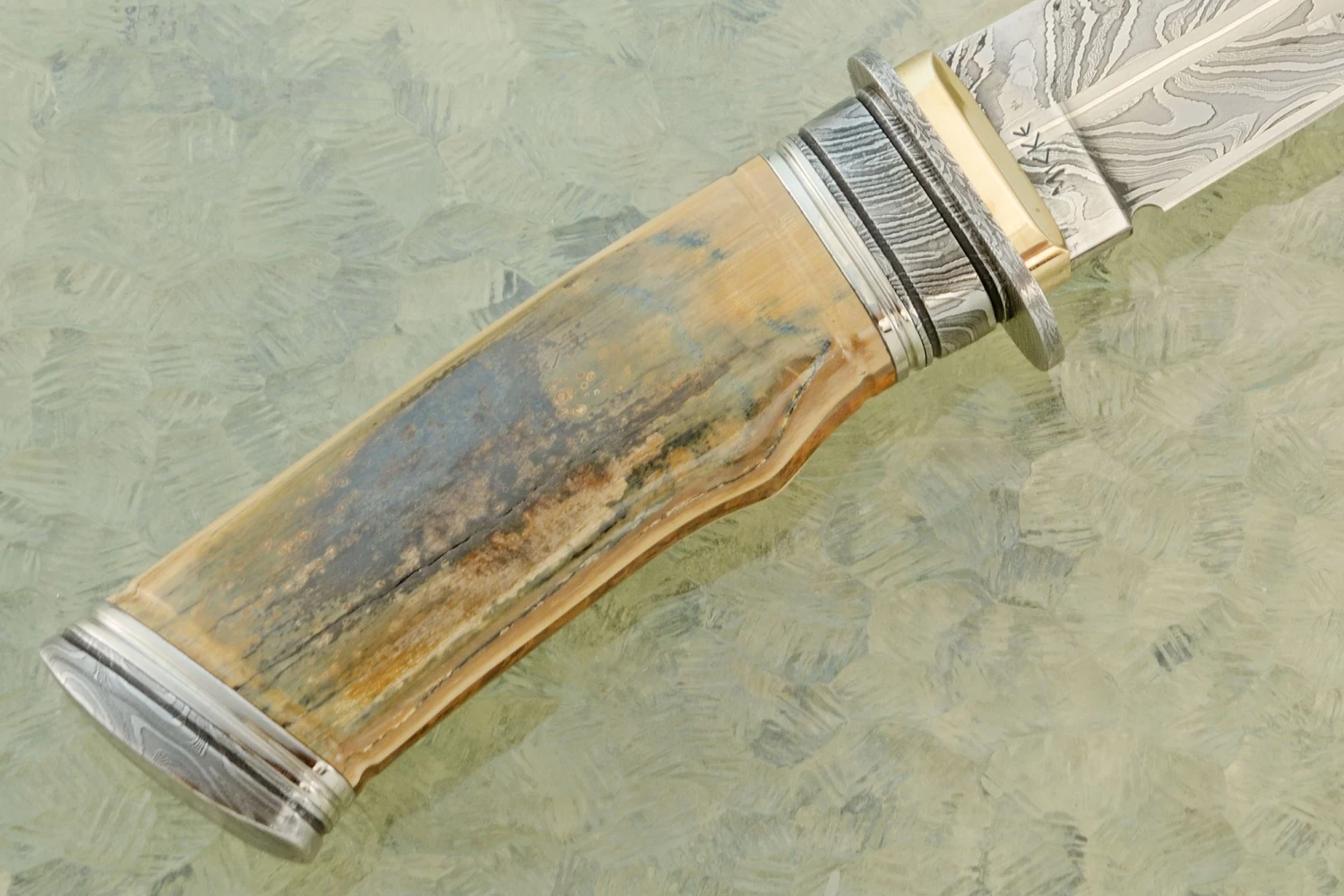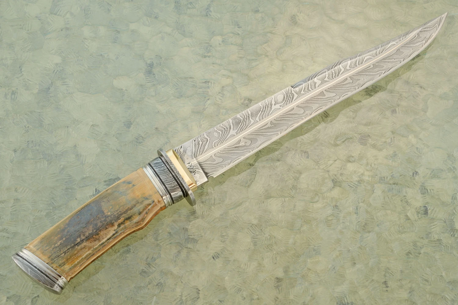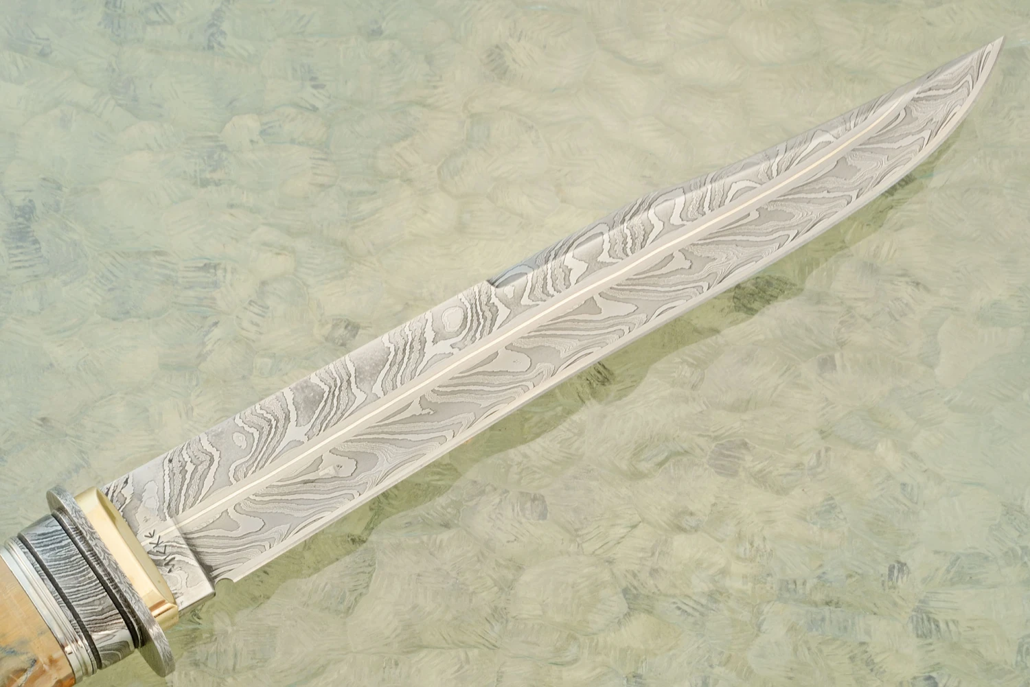Multi-bar Damascus Swedish Bowie With Mammoth Ivory