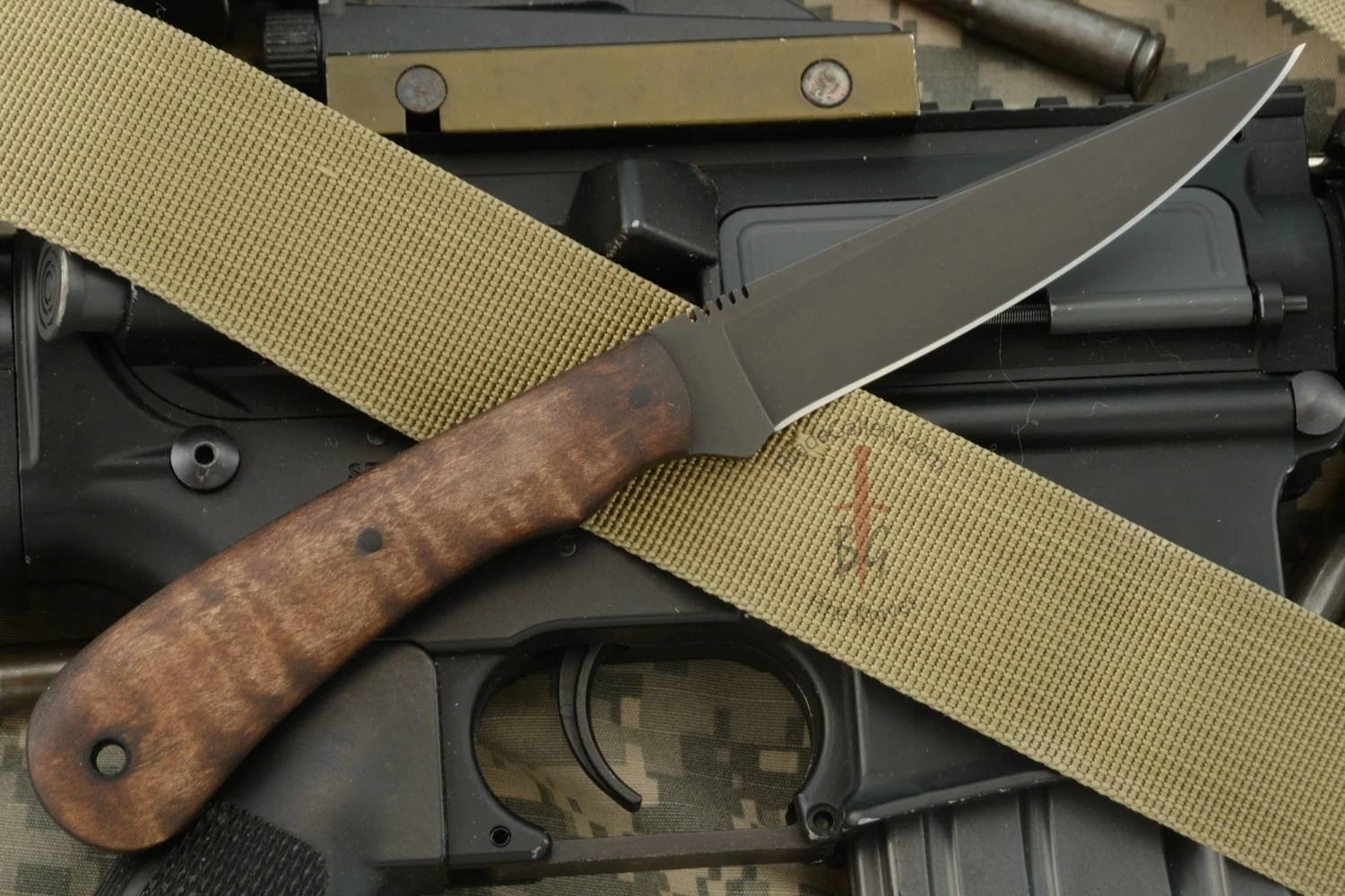 Damascus “D” Guard Bowie With Maple And Antique Wrought Iron