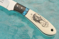 Chief High Bear Scrimshawed Drop Point Hunter With Mammoth Ivory, Turquoise, And Bog Oak