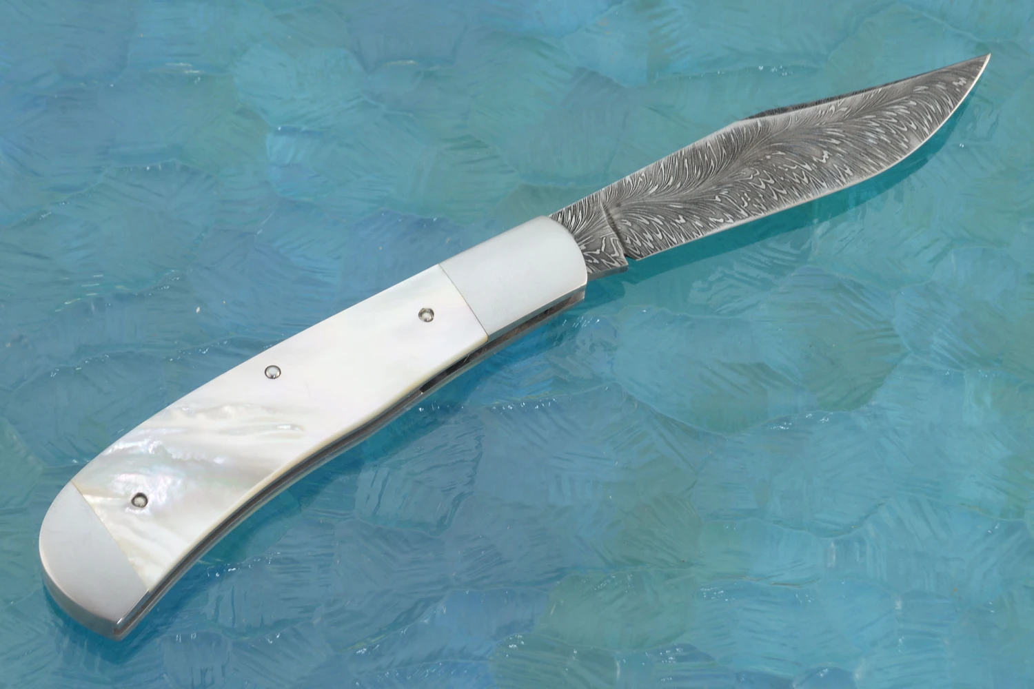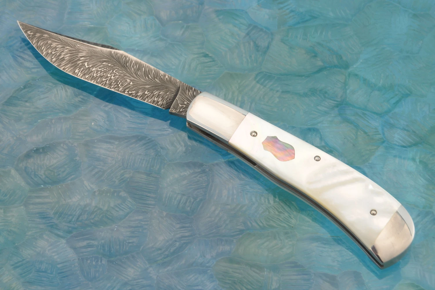 Damascus Backlock Interframe With Bulino Engraving And Blacklip Mother Of Pearl (Prototype)