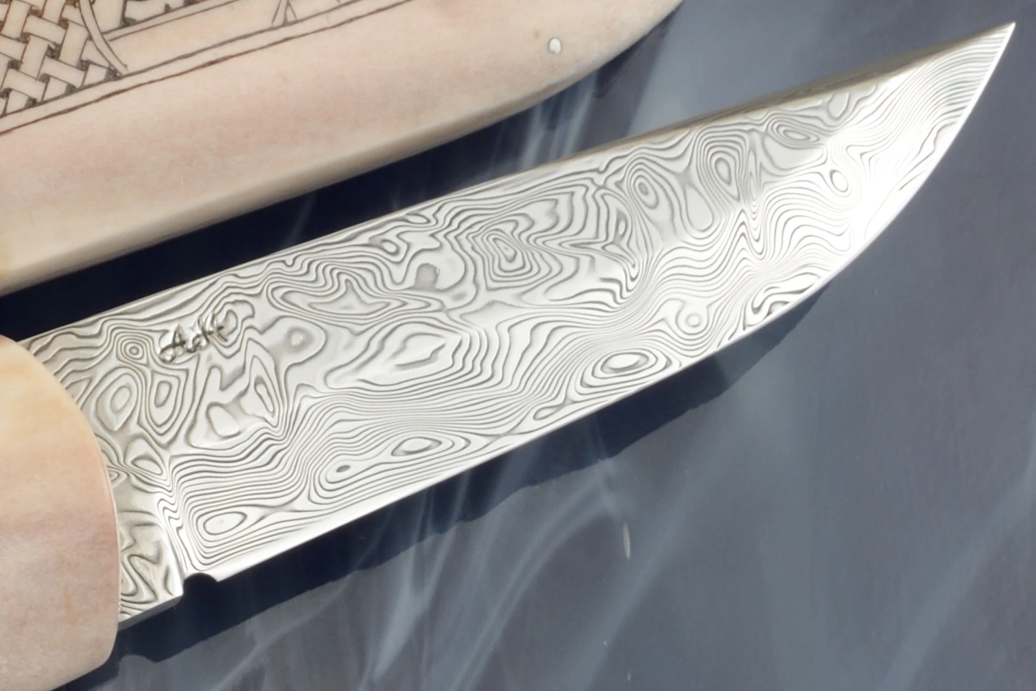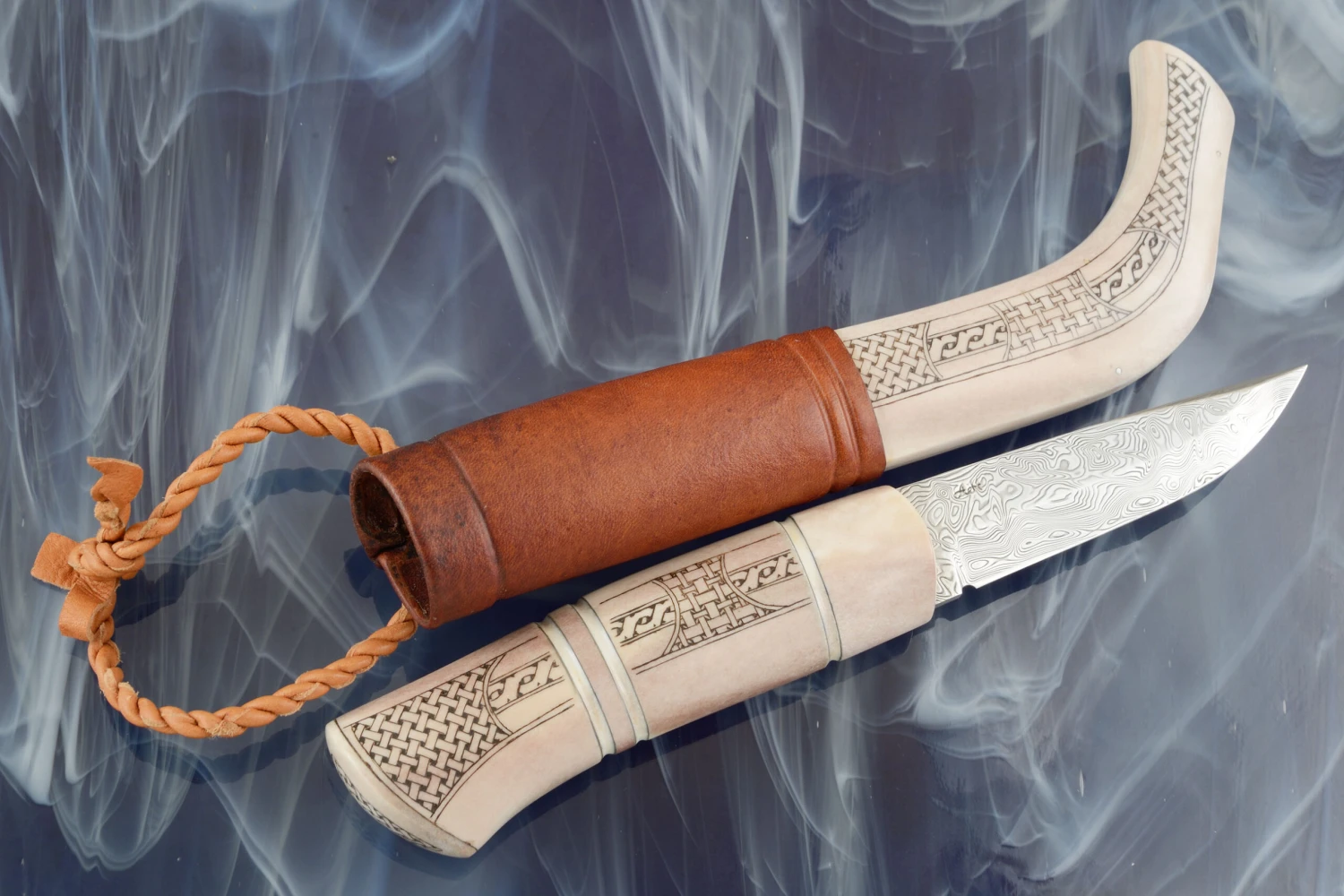 Sami Style Half Horn Hunter With Frost Pattern Damascus