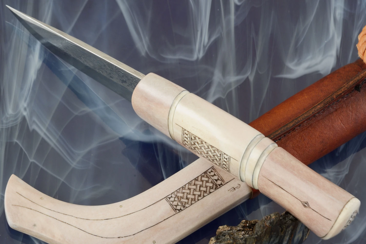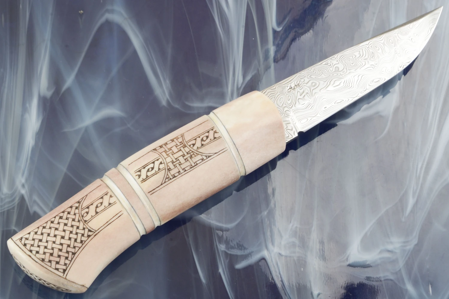 Be the first to review “Sami Style Half Horn Hunter With Frost Pattern Damascus” Cancel reply
