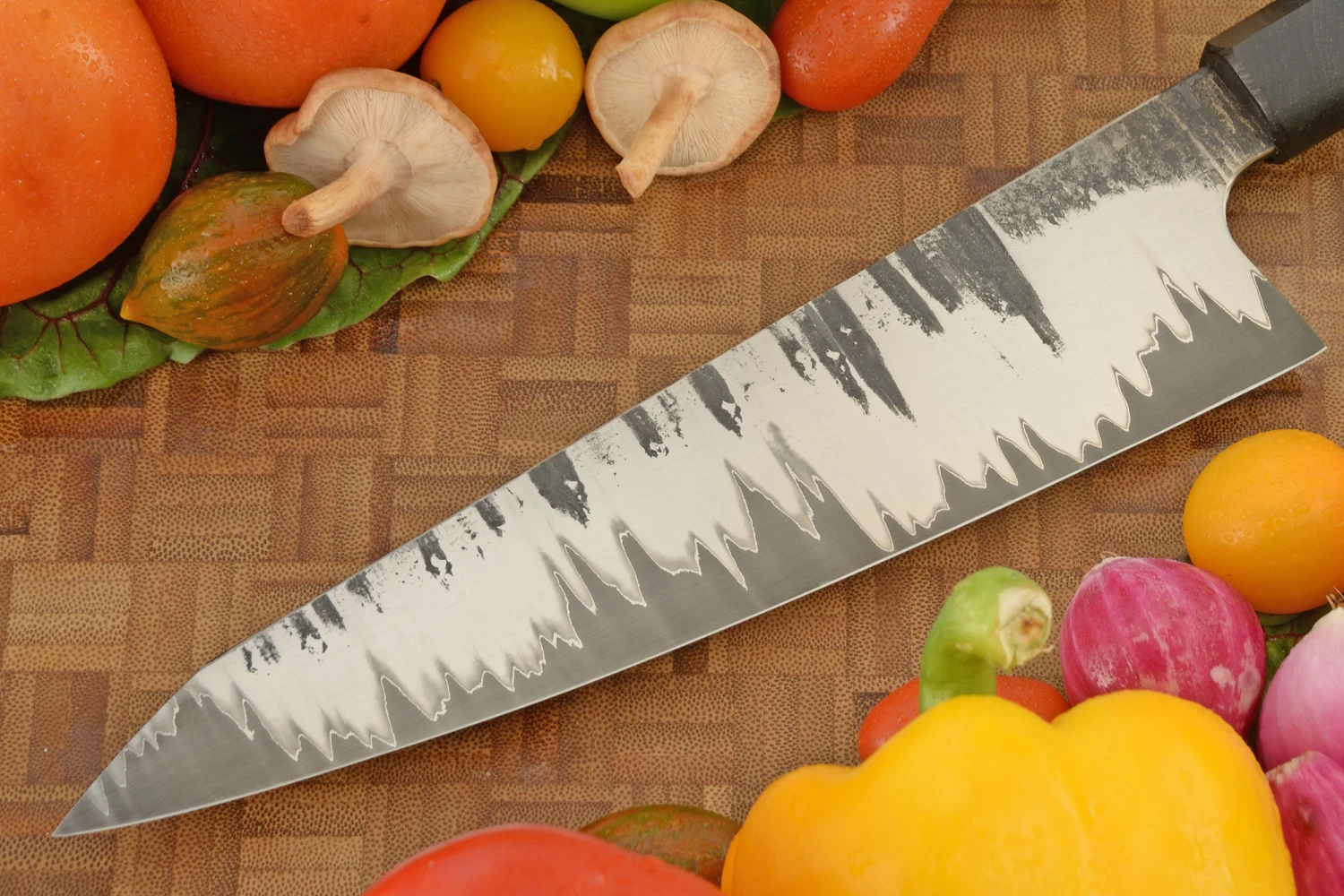 San Mai Chef’s Knife – Gyuto – With Blue Maple Burl And Bog Oak (8-1/2 In.)