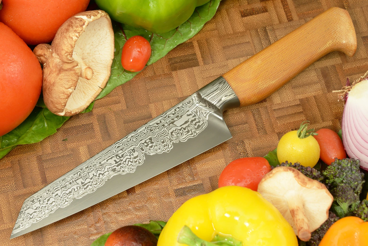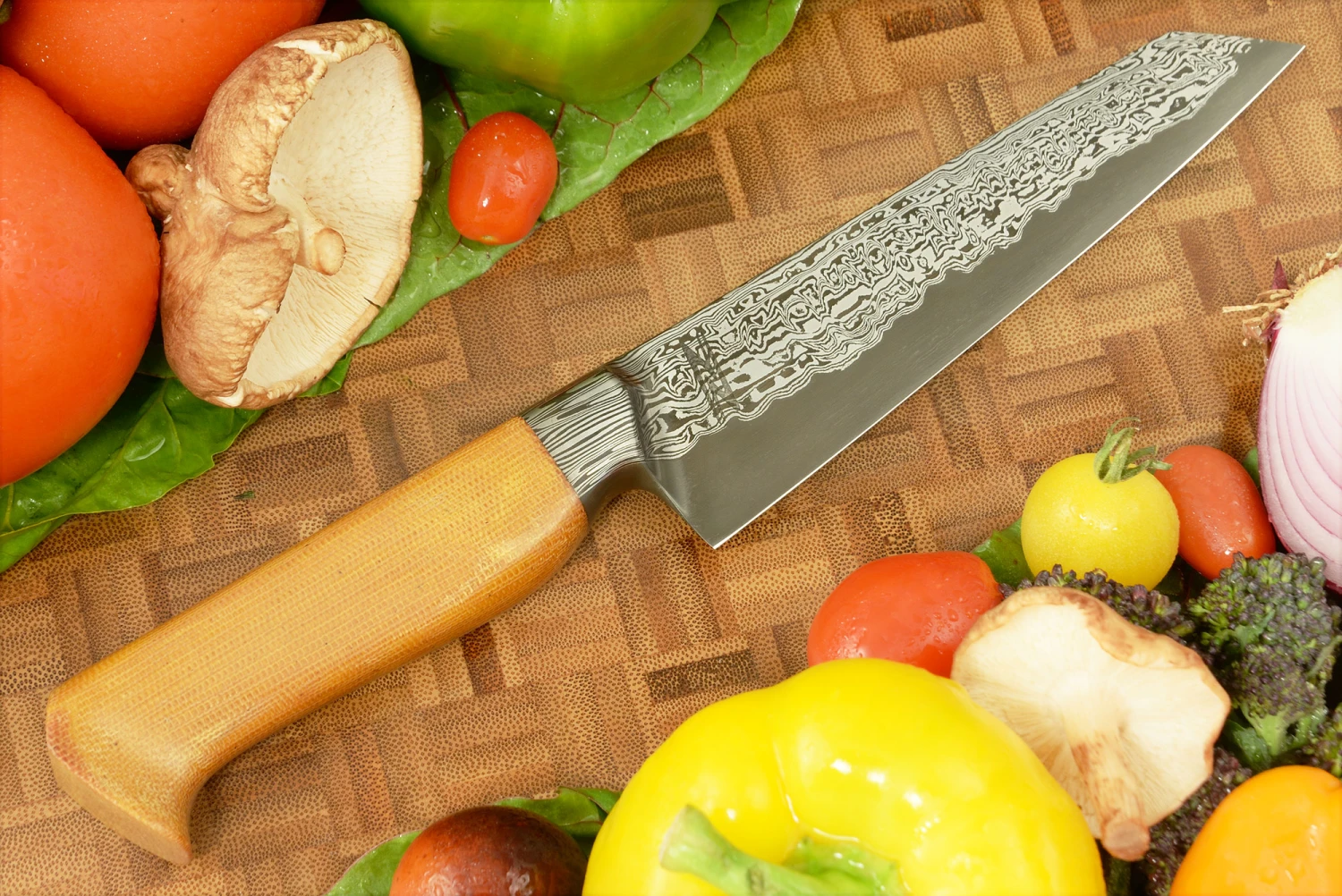 San Mai Damascus Chef’s Knife – Kiritsuke Gyuto (6 In.) With Yellow Micarta