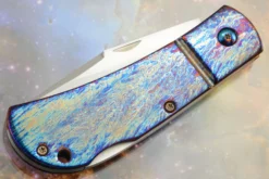 Atlas CFL Framelock Front Flipper With Dark Titanium And Timascus – Satin Finish, Sheepsfoot – Elmax