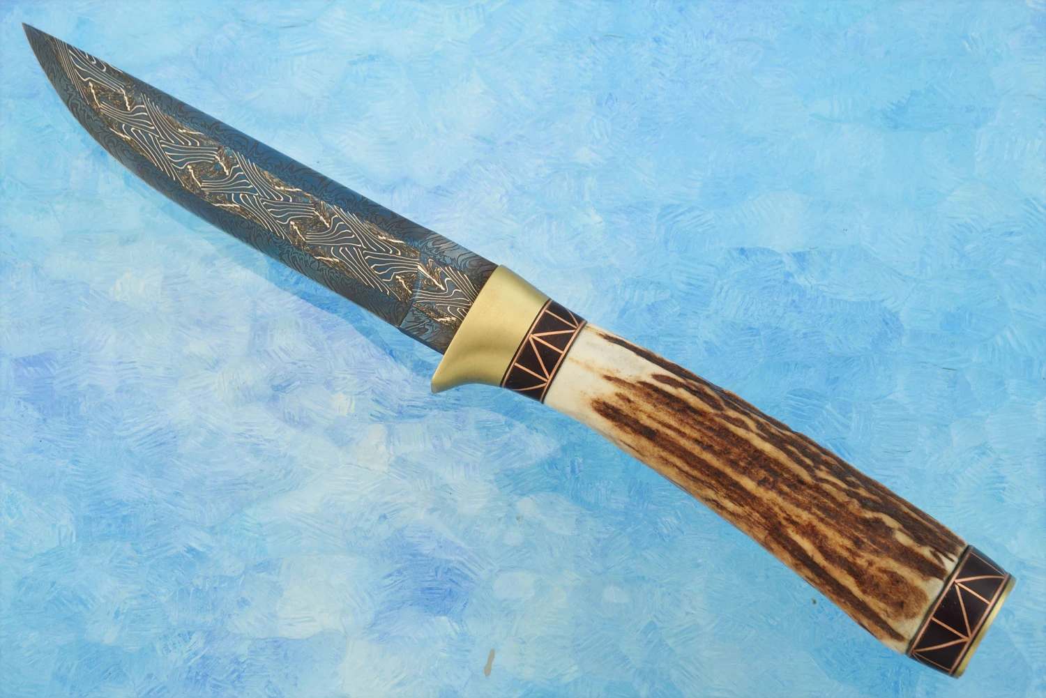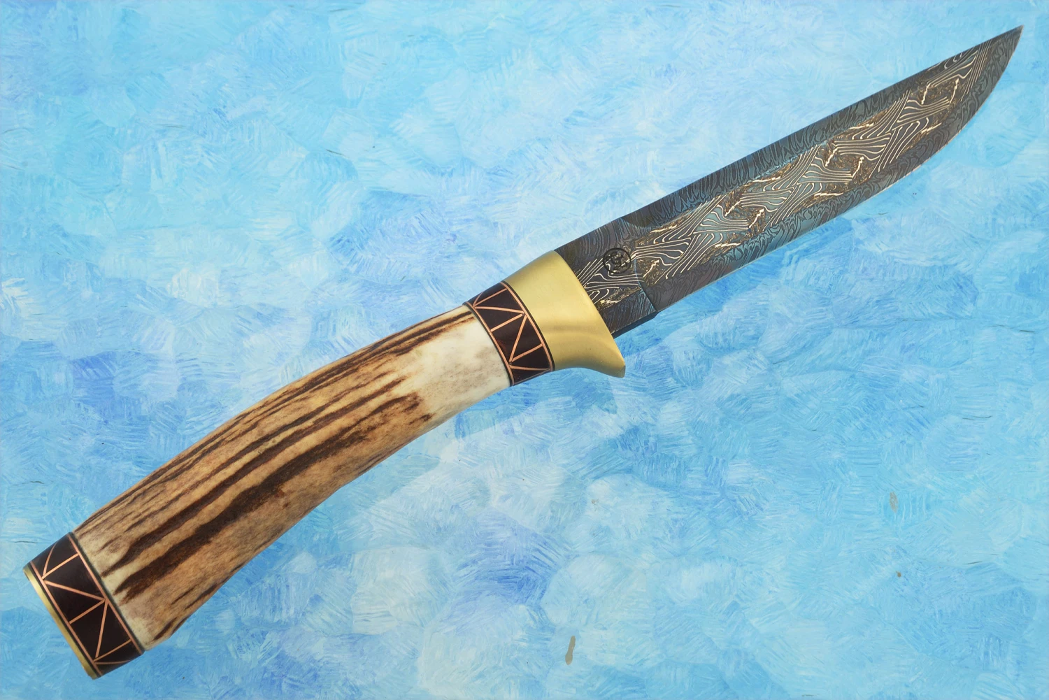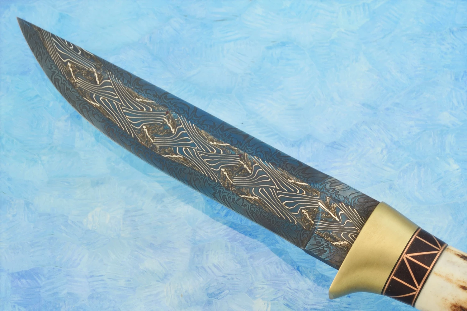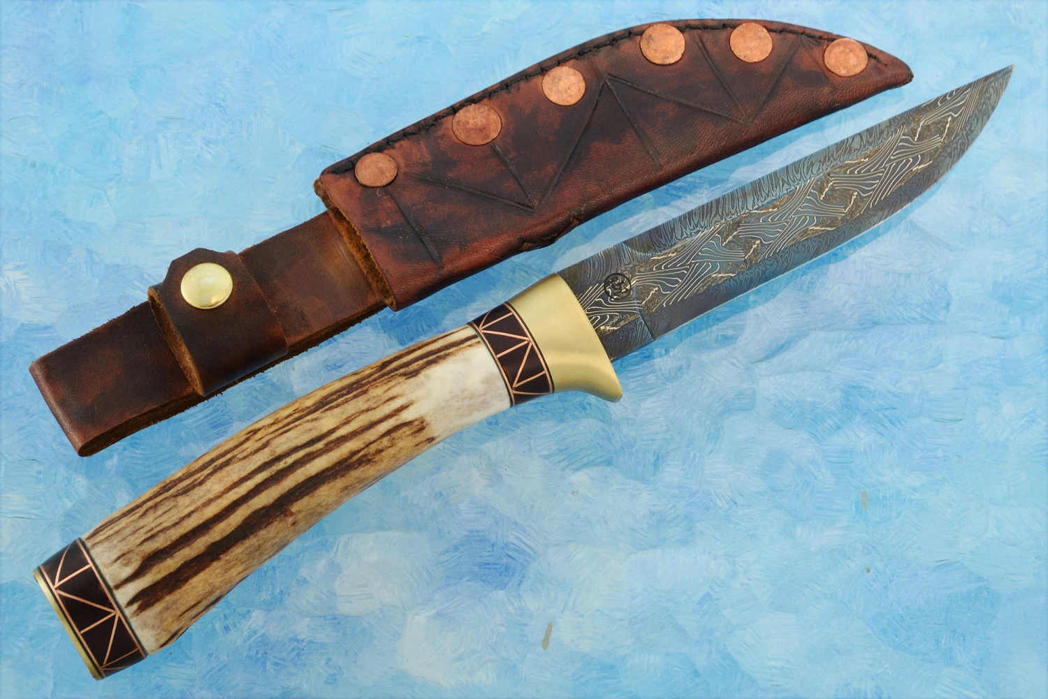 Damascus “D” Guard Bowie With Maple And Antique Wrought Iron