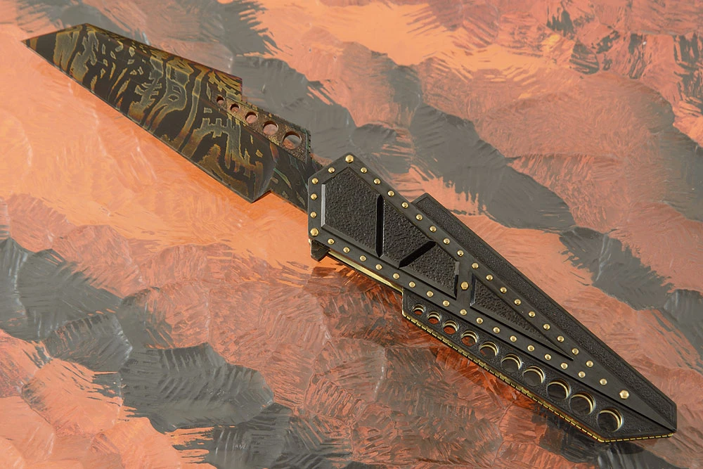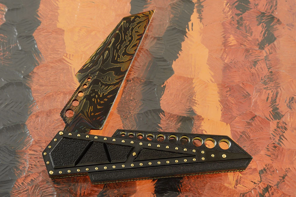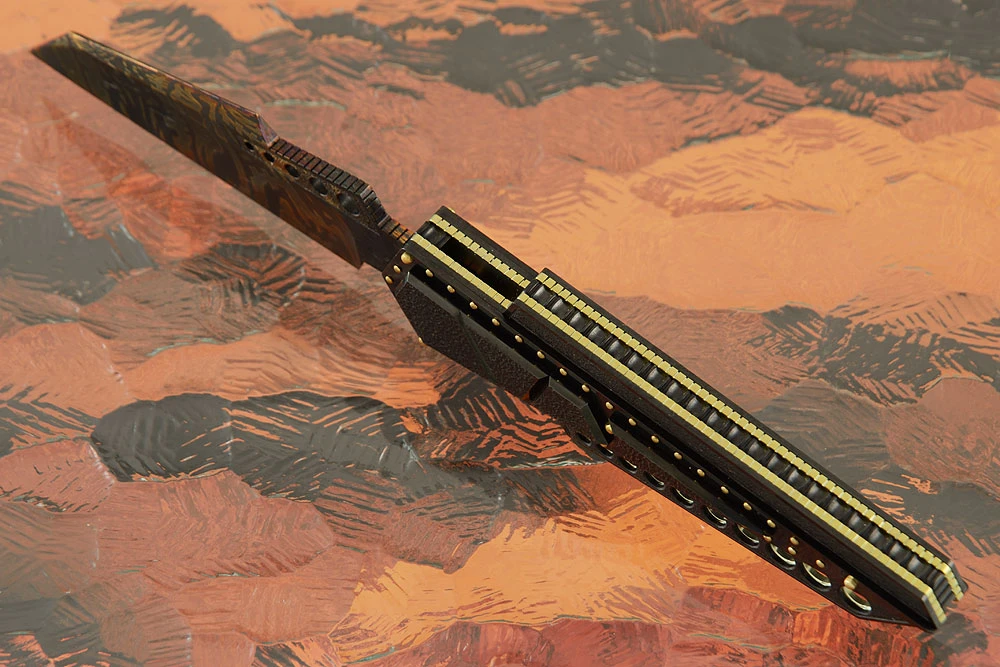Damascus Backlock Interframe With Bulino Engraving And Blacklip Mother Of Pearl (Prototype)
