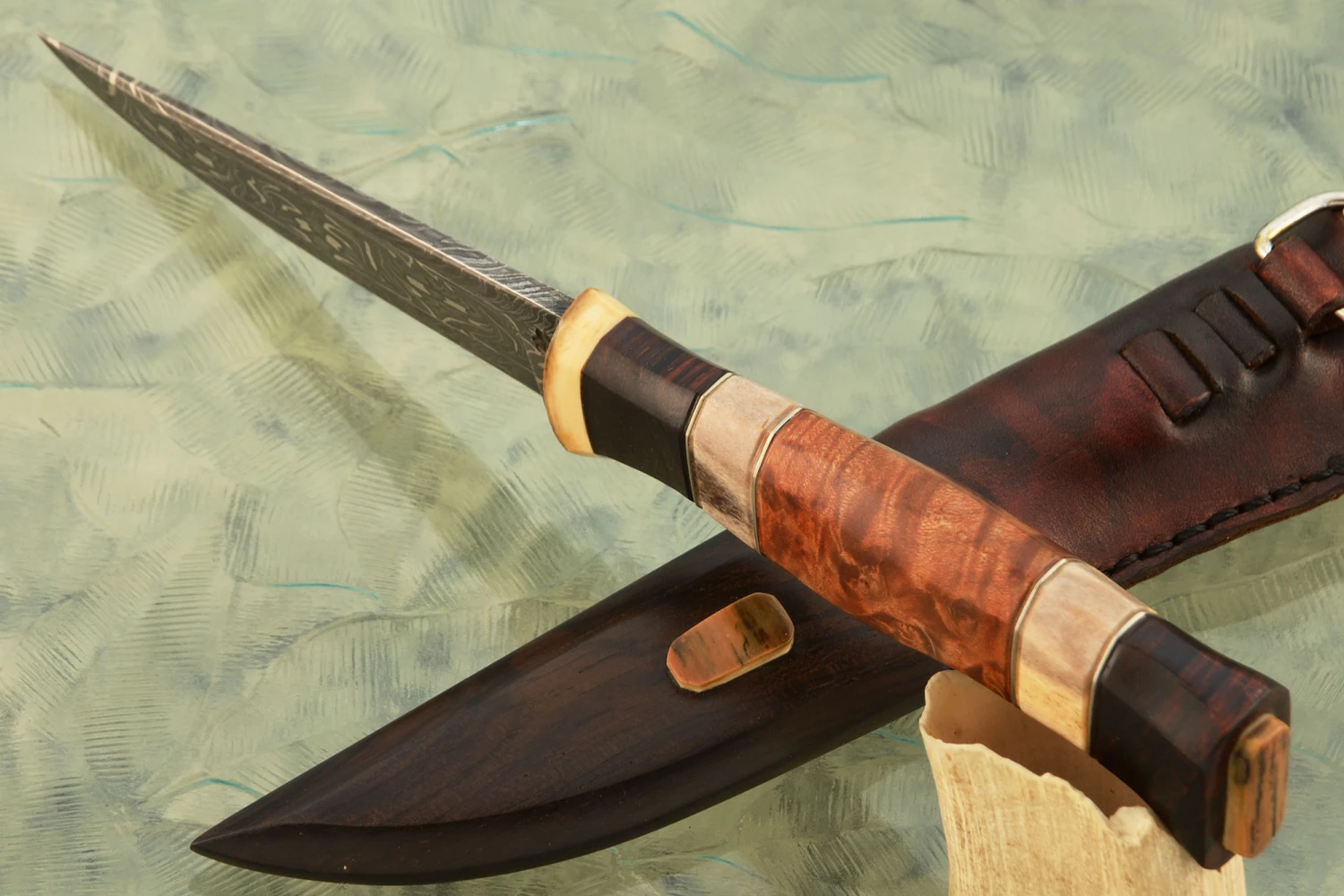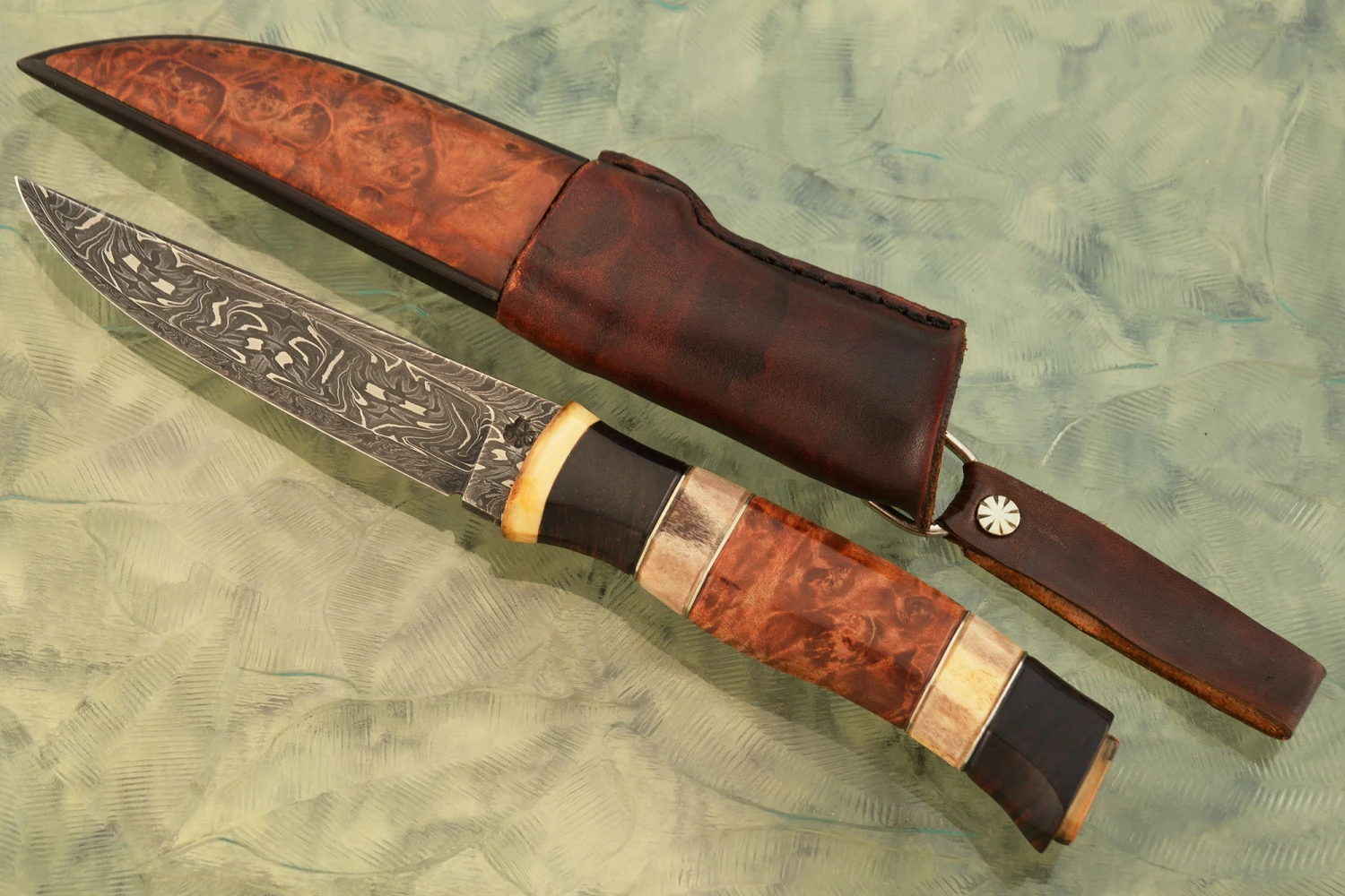 Damascus “D” Guard Bowie With Maple And Antique Wrought Iron