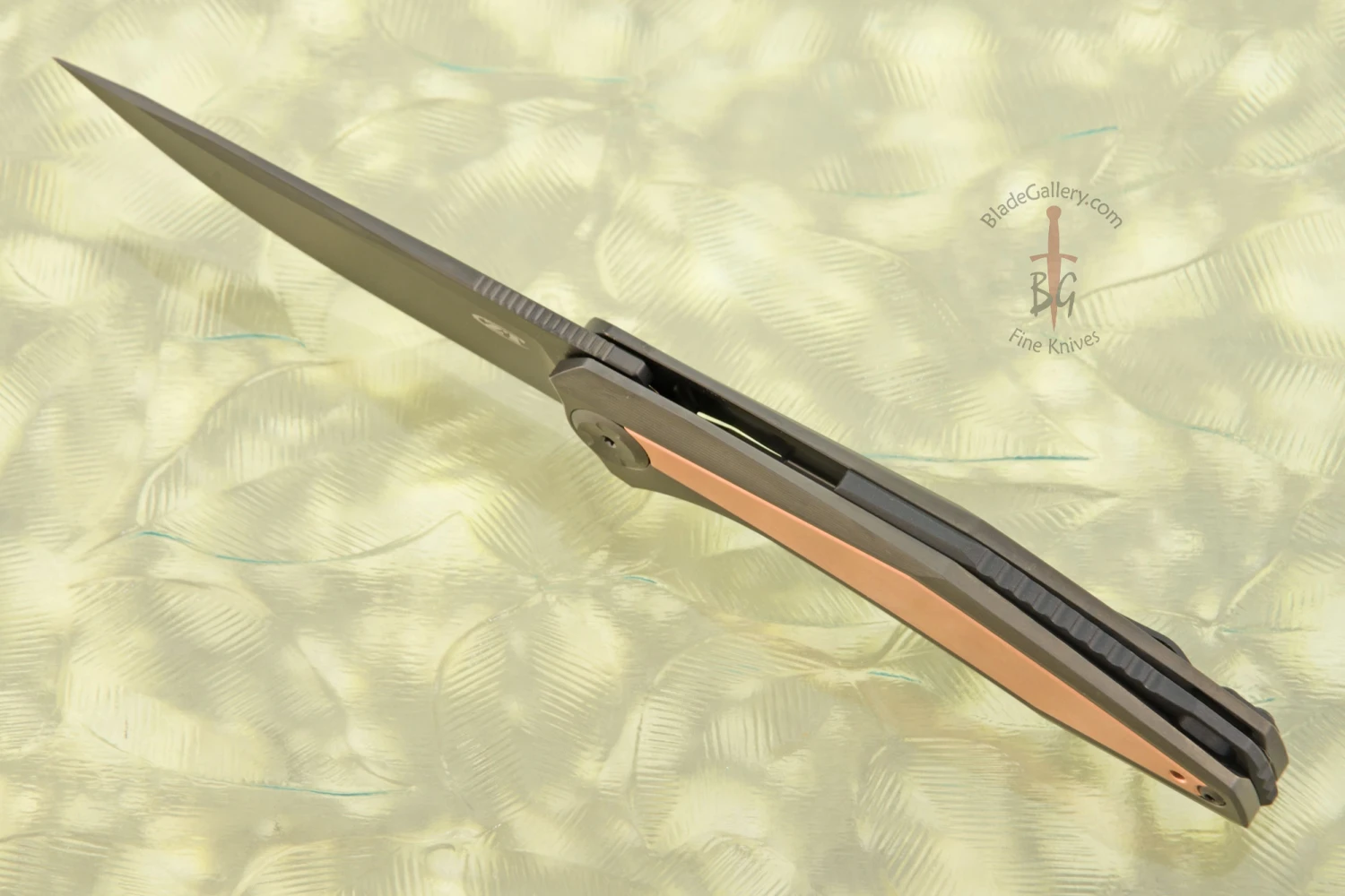 HI-06 Engraved Front Flipper With Damascus And Copper Dark Matter FatCarbon (Ceramic IKBS)